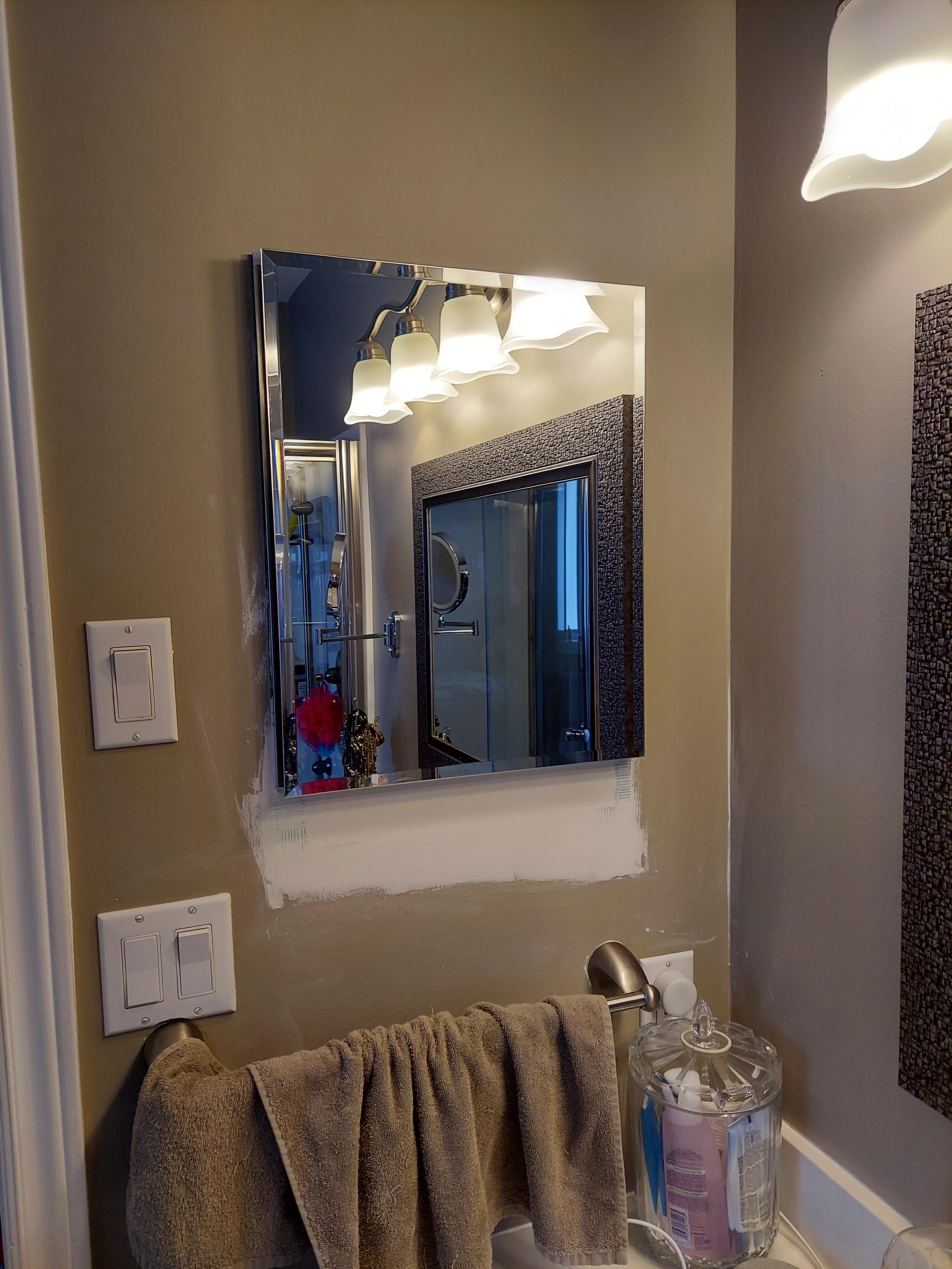 FULL COVERAGE MIRROR: Full-overlay mirrored door and mirrored interior