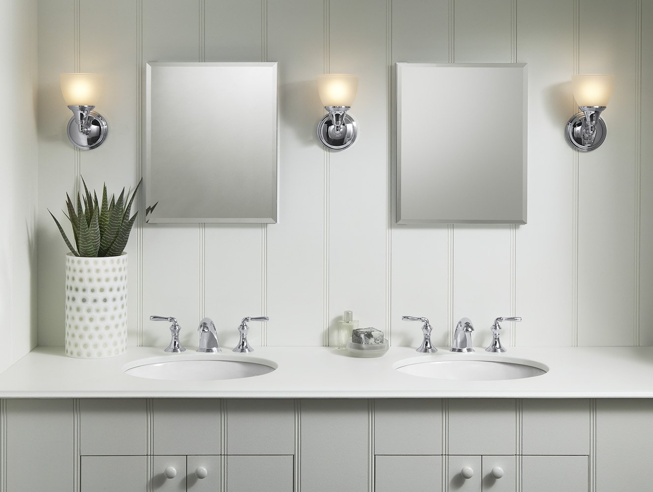 ADJUSTABLE: Two adjustable tempered-glass shelves and two-way adjustable hinges with 108-degree opening capability for easy cabinet access