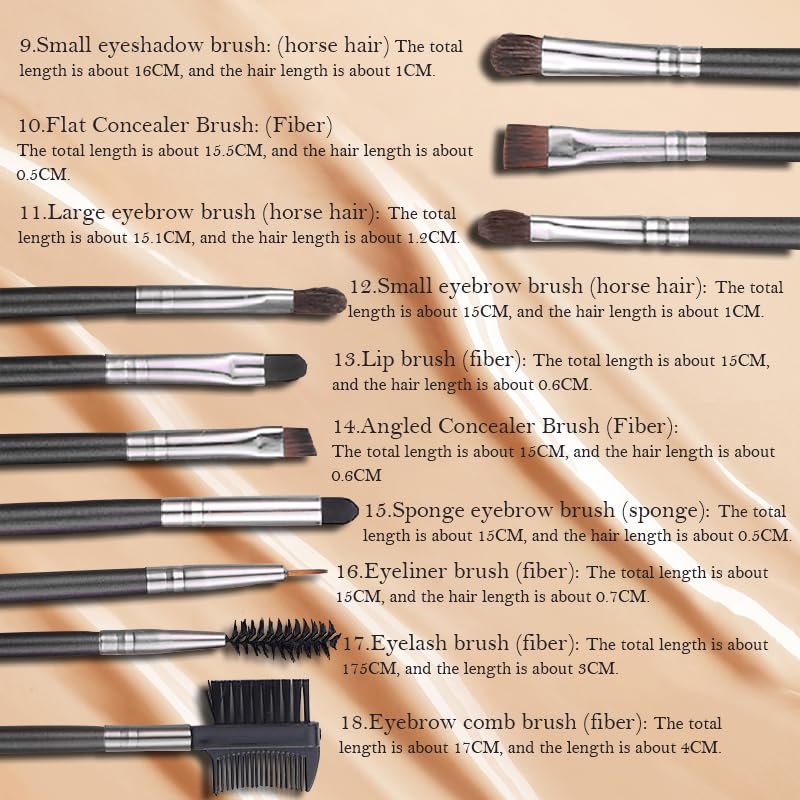 A COMPLETE BEAUTY SET - 18Pcs professional makeup brushes , which meets all you need for applying your makeup. Containing everything you need, this make up brush set is sure to take your make up skills to next level. Helping you create your own unique look.