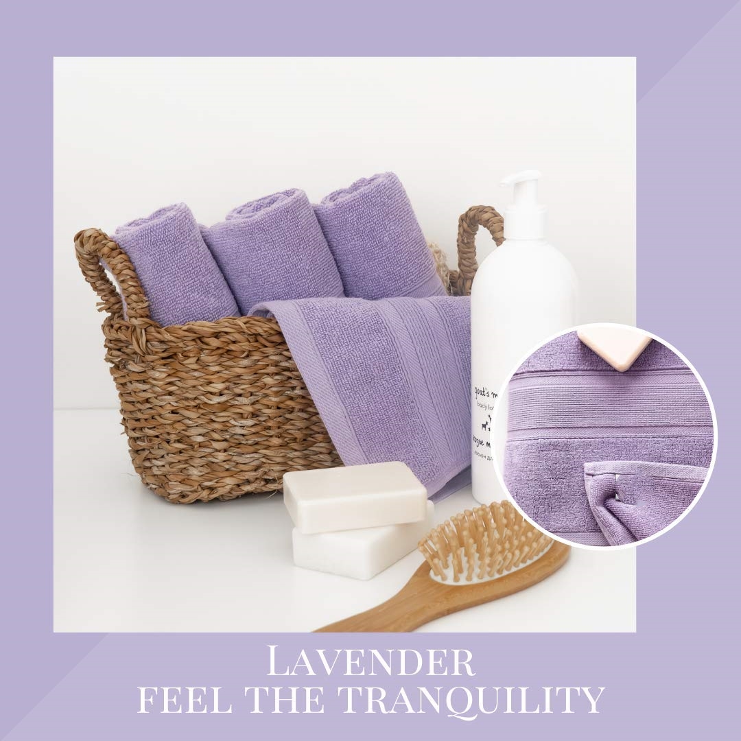 Soothing Lavender Color Palette: Infuse tranquility into your bathroom decor with the soothing lavender hue of these towels. The gentle color adds a touch of serenity, creating a relaxing and inviting atmosphere for your bathing space.