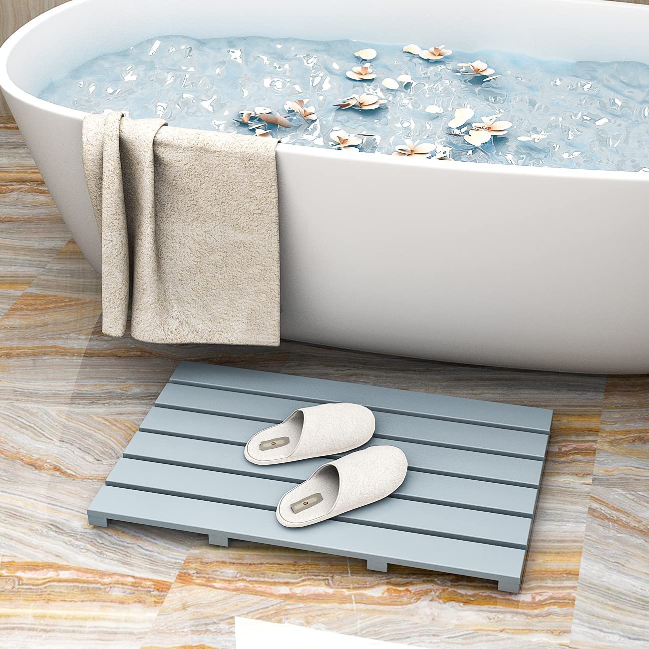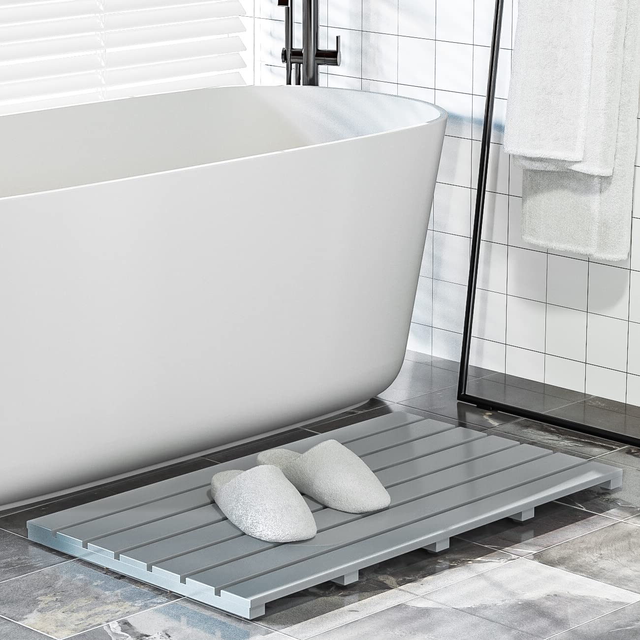 - ☑VERSATILITY: The floor mat is ideal for bathroom, kitchen, entryway, hallways, office, spa or sauna, the stylish look also makes it a modern home decor; as for the outdoor use, such as swimming pool, outdoor shower room and you can even take it when you go to the beach,etc