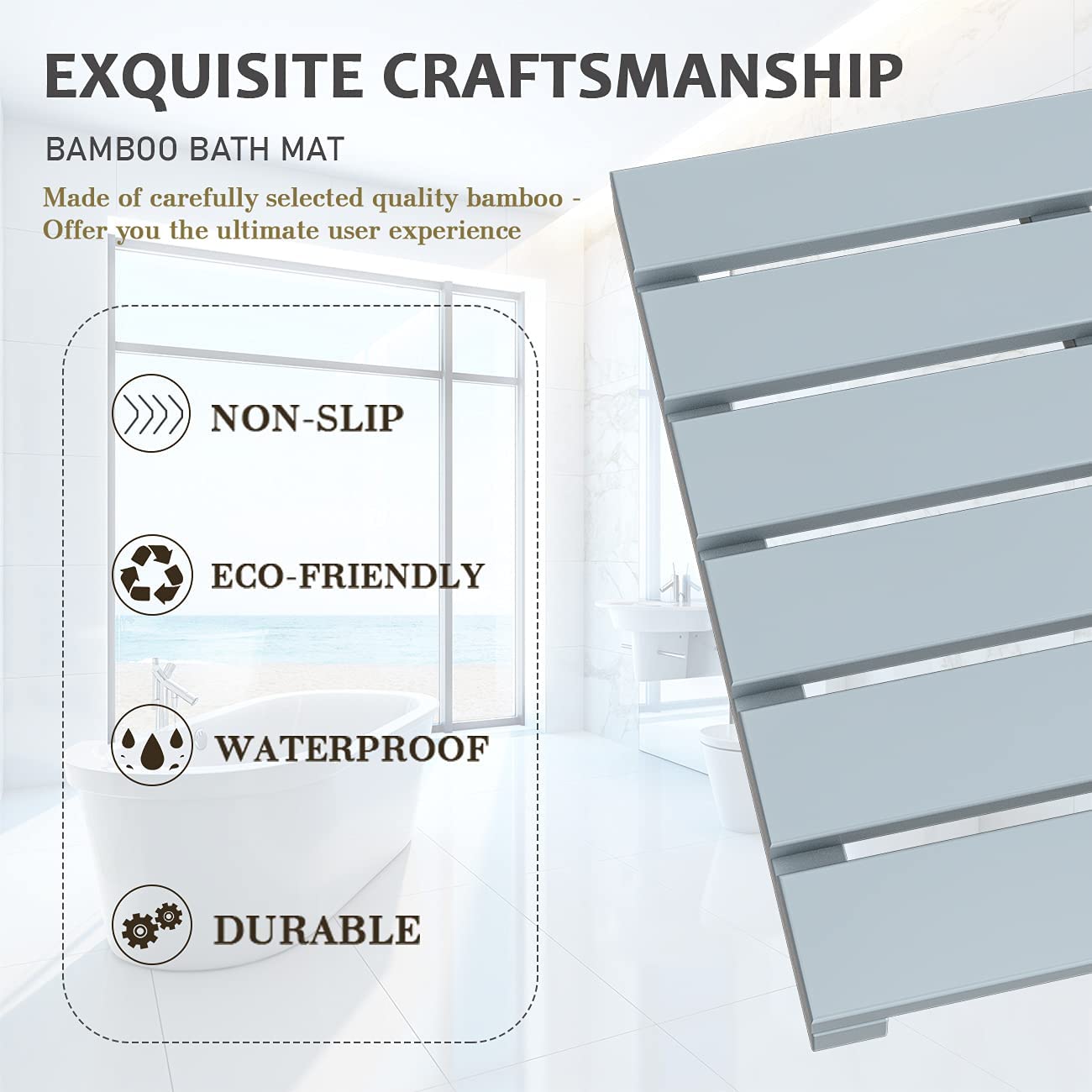 Waterproof and Resistant to Moisture: Bamboo is naturally resistant to moisture, making this bath floor mat an ideal choice for the bathroom. The waterproof properties ensure durability and longevity, even in humid environments, while maintaining a sleek appearance.