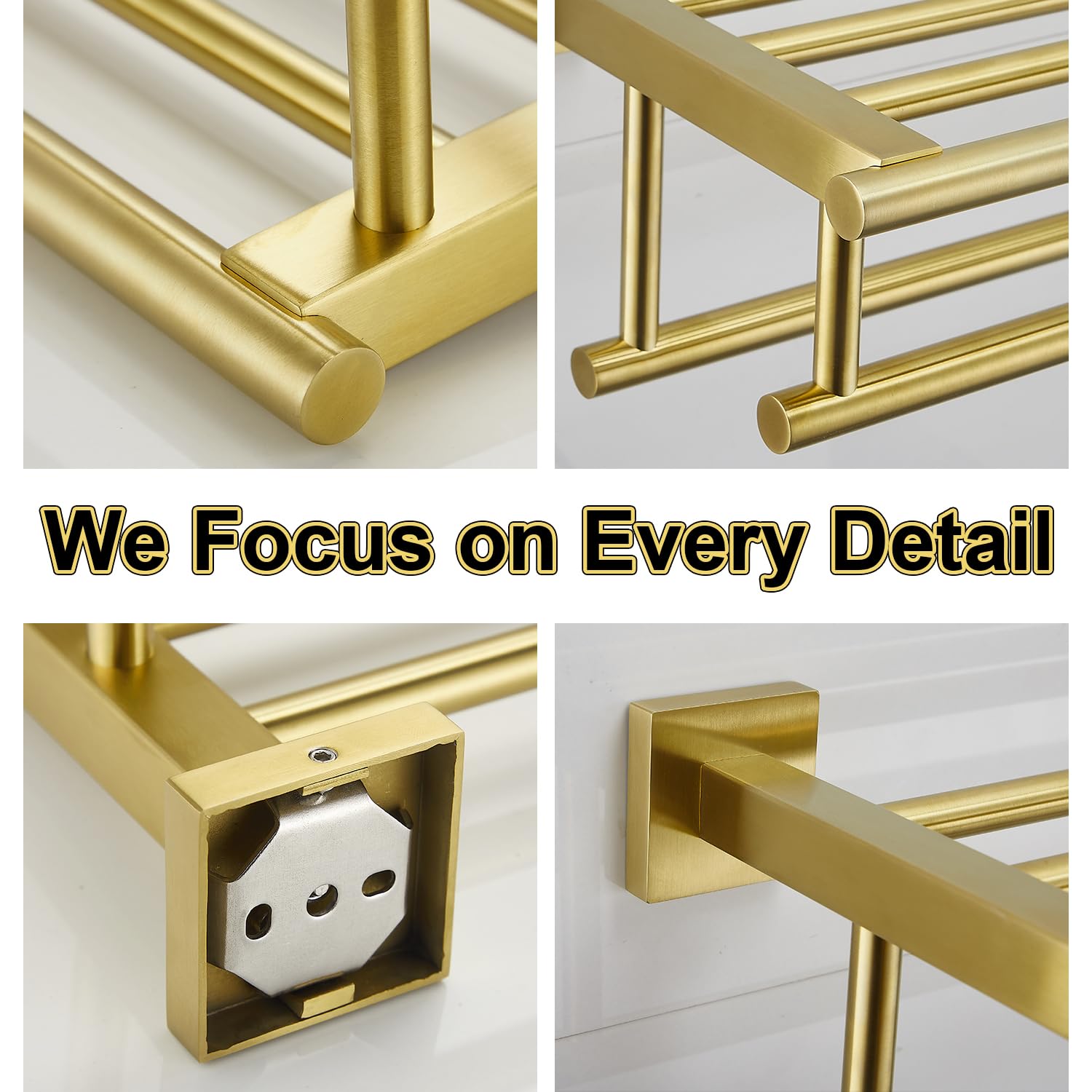 1.The towel rack is made of SUS304 stainless steel, which is easy to clean, durable and will not rust.