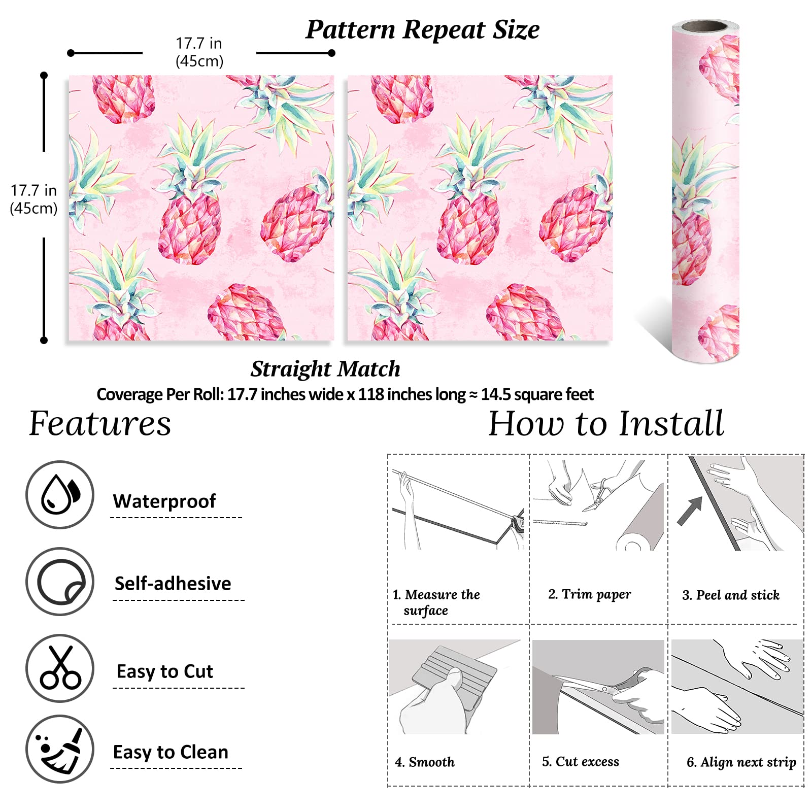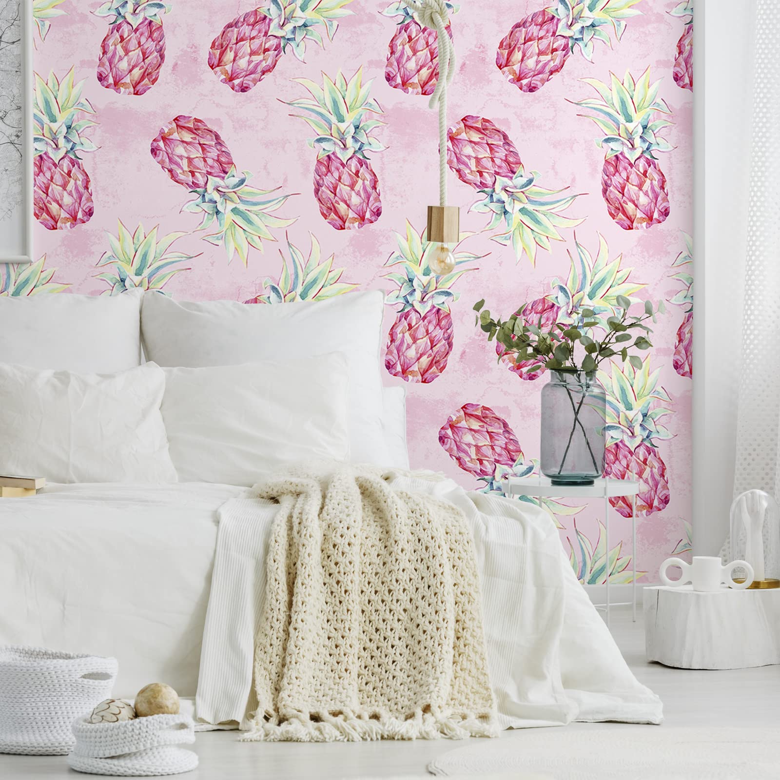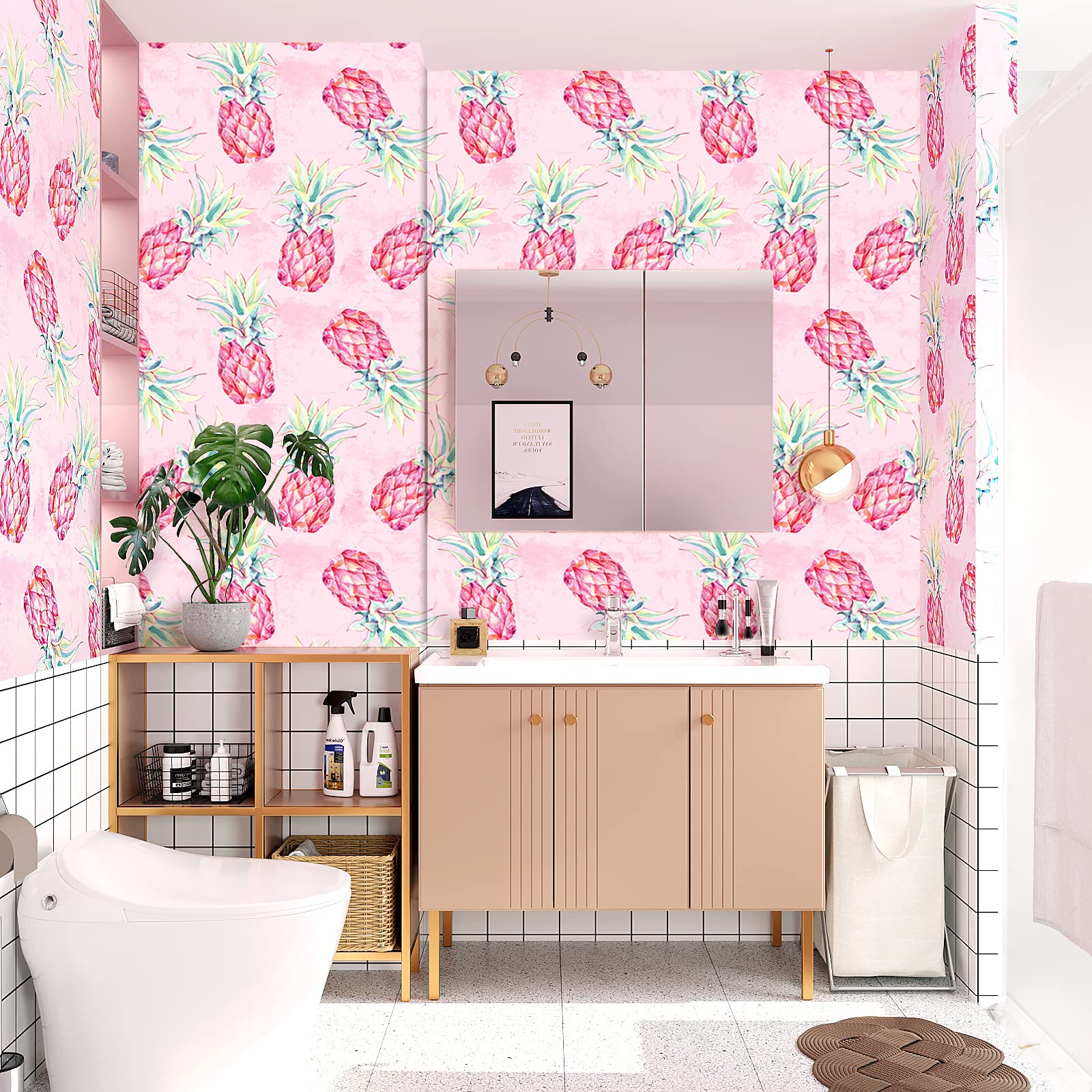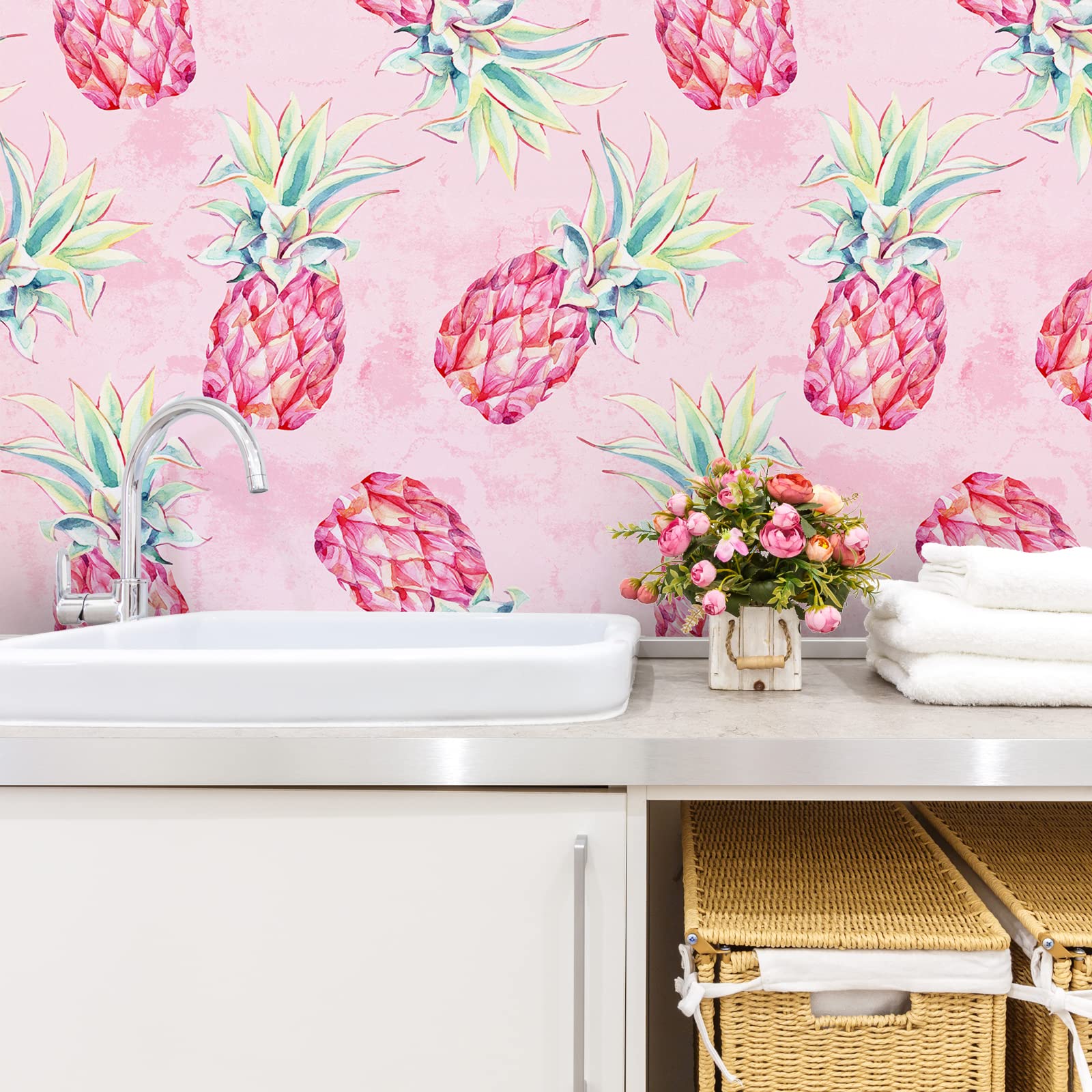 【FEATURE&PATTERN】: The pink pineapple wallpaper is waterproof, oil-proof, removable, won't damage your walls, renter-friendly. Pink wallpaper with creative bold pink pineapple patterns, create an on-trend and stylish space effortlessly.