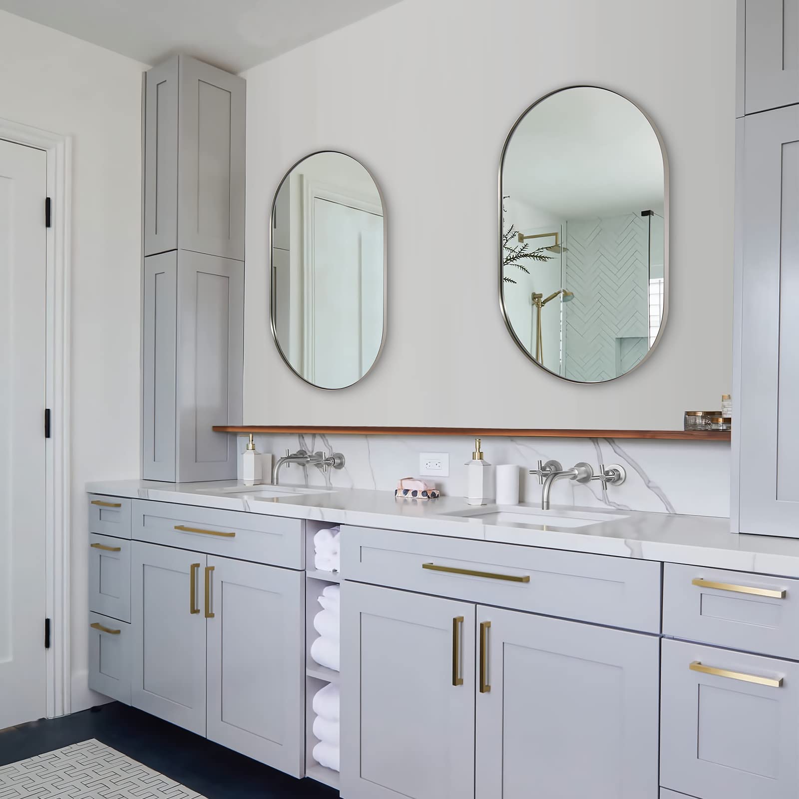 The mirror's dimensions, measuring 20x33 inches, offer a generous reflective surface, making it both functional and decorative. Its oval shape introduces a classic and unique aesthetic that complements various bathroom styles, from traditional to contemporary.