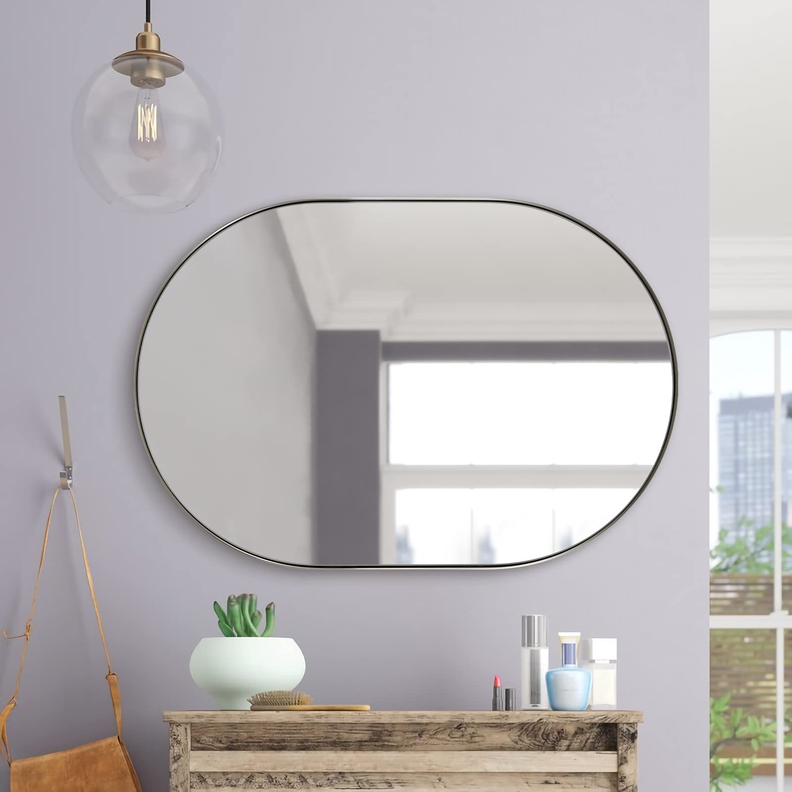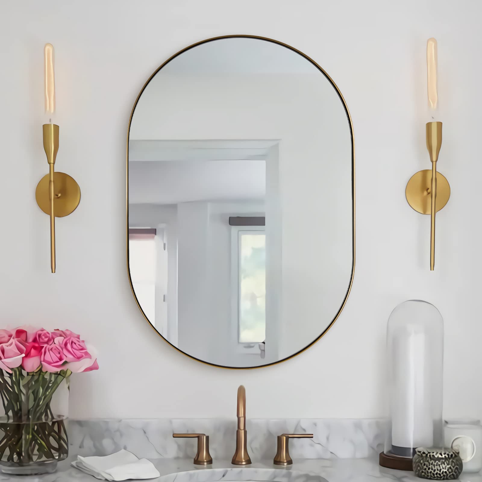 【SIMPLE YET GORGEOUS BATHROOM MIRROR】: Modern and sleek, simple yet gorgeous. This 20x33’’ bronze oval mirror is the capsule shape coming with the recessed designed(the recessed mirror floats in the framed surrounded by a thin 1/12" gap). It could put anywhere for your space, such as bathroom, bedroom, power room, entryway, hallway, sunny room even the narrow blank space. Let this simple metal frame mirror be the part of your decoration and it would enhance the beauty of your space.