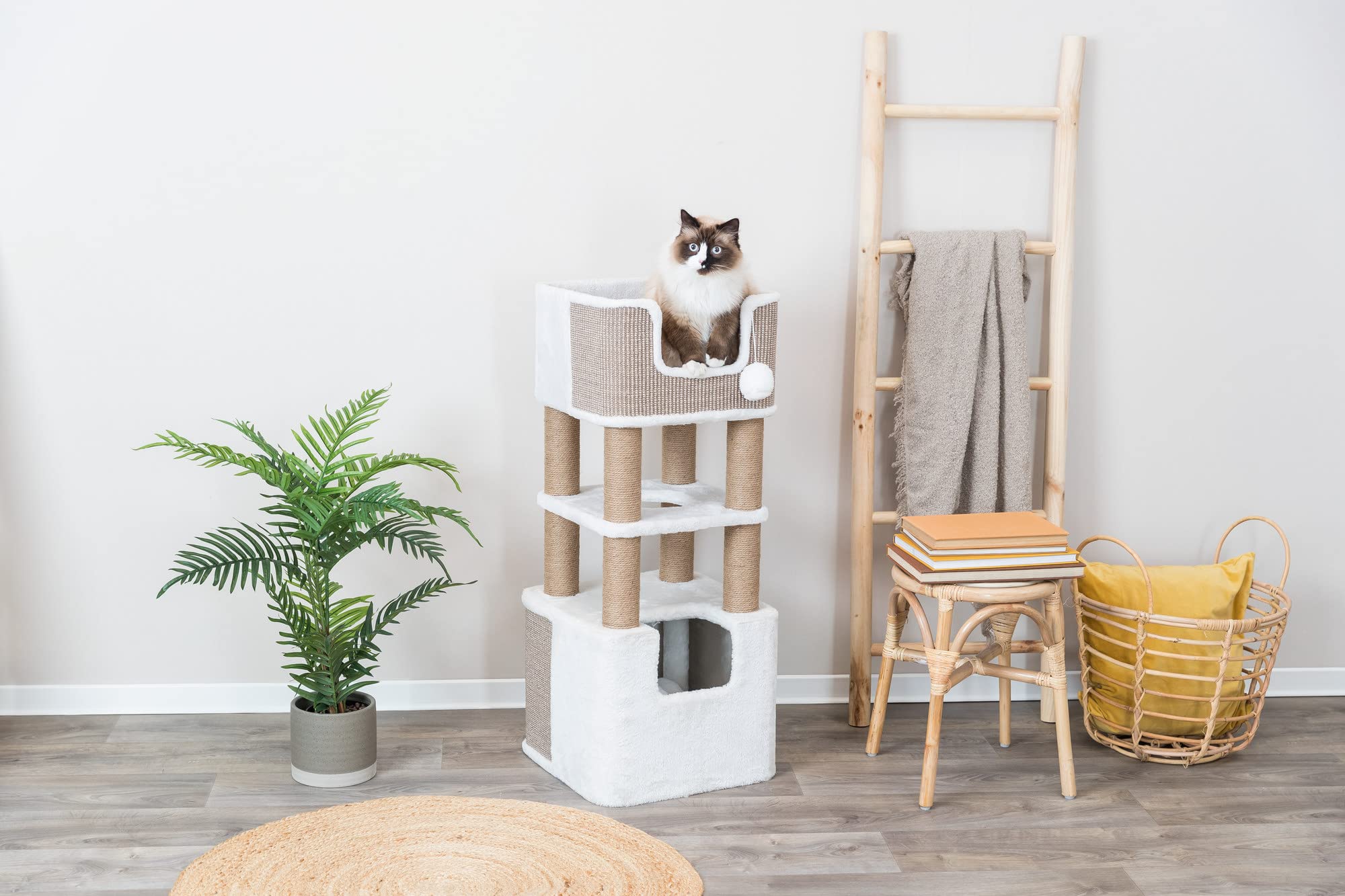Crafted with sturdy materials and featuring a stable base, this cat tower ensures safety and stability while your cat explores and plays. The neutral design seamlessly integrates into your home decor, adding both functionality and aesthetic appeal to your living space.