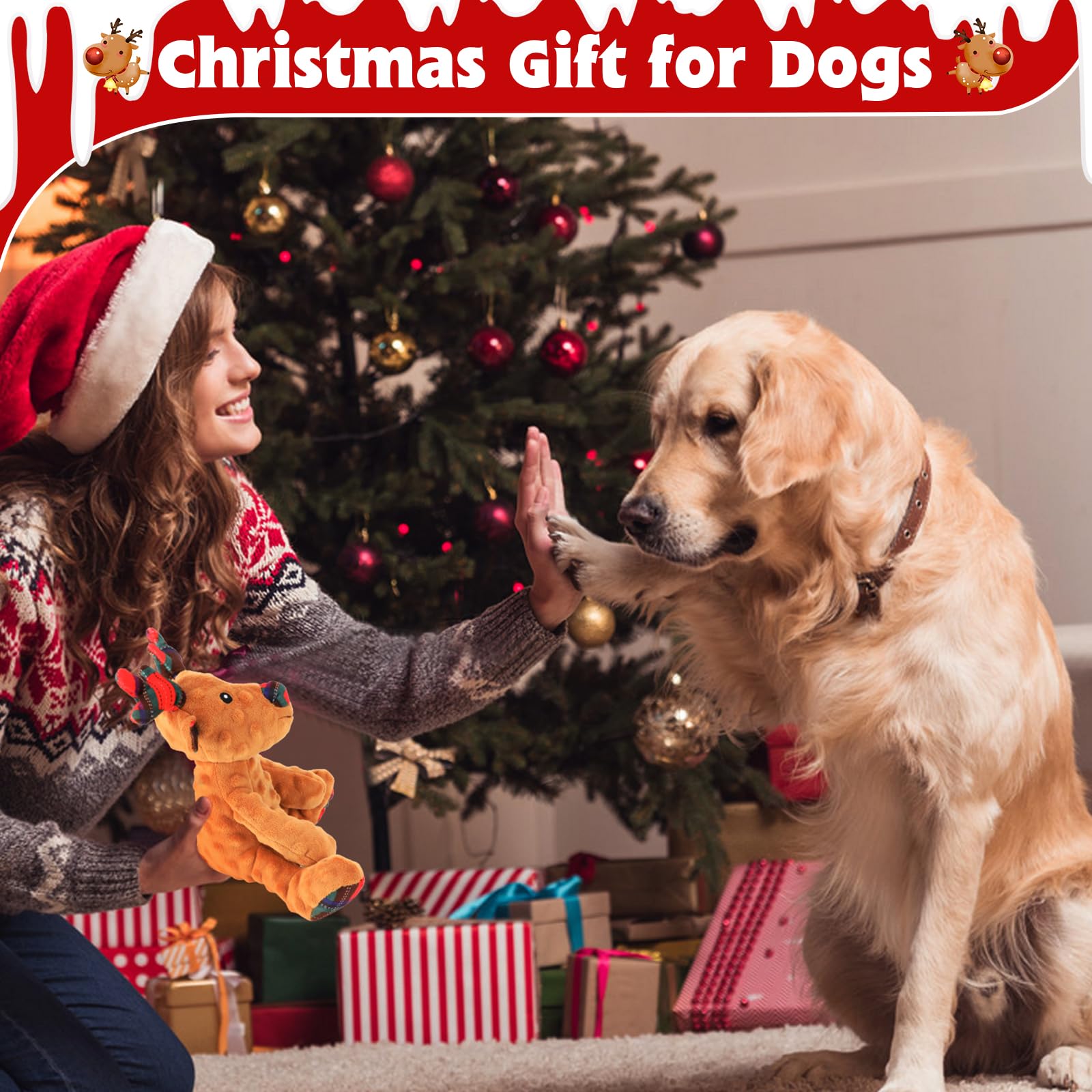 🌲🦒Premium Material: This puppy christmas toy is made of bubble plush. Filled with high quality PP cotton. High-quality materials protect the health of the dog. This dog toy is very easy to clean and can be machine washed or hand washed. For daily use, you can wipe off the stains with a towel.