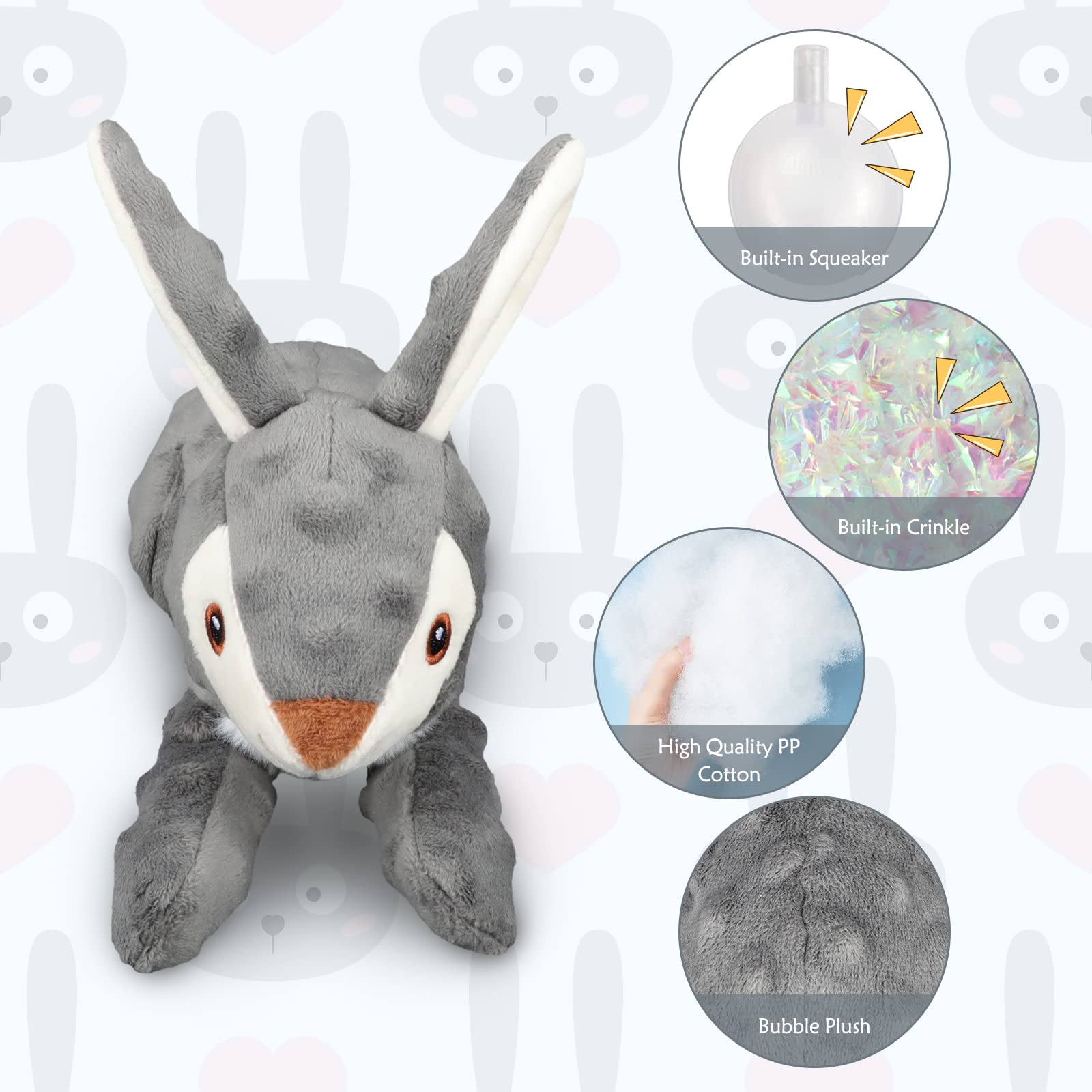 🌲🦒Christmas Squeaky Dog Toys: Our interactive dog toys have built-in squeaks and crinkle paper. It squeaks when you press on the belly of the toy or when your pet bites it. When you press on the toy's ears and tail, it will emit crinkly sound. Bring more fun to pets. It can also increase the relationship between you and your pet.