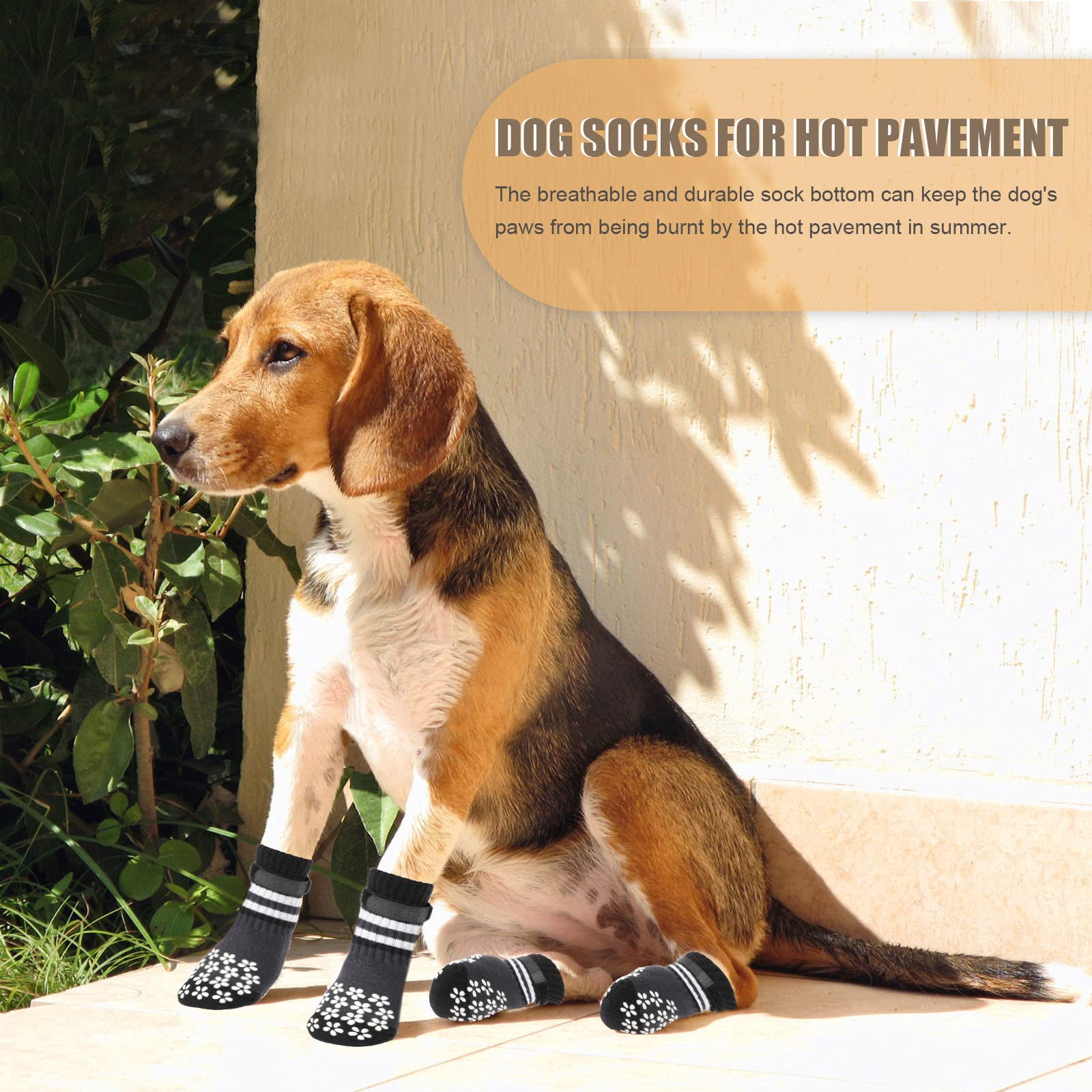 【Dog Socks for Hot Pavement】Our non-slip dog socks are made of high stretch, soft and breathable knitted fabric. The breathable and durable sock bottom can keep the dog's paws from being burnt by the hot pavement in summer. There are six socks in the parcel. Easy to replace when cleaning. Washing hands is recommended.