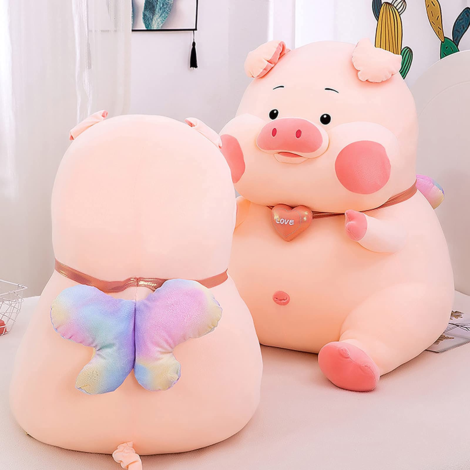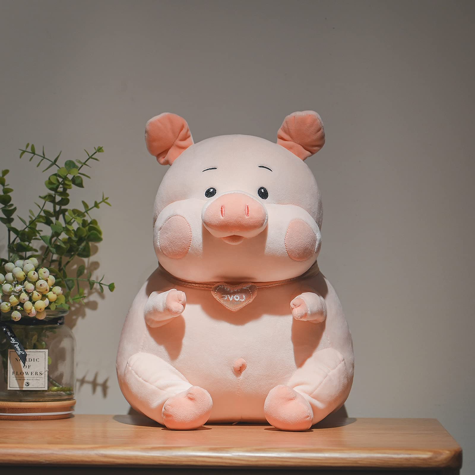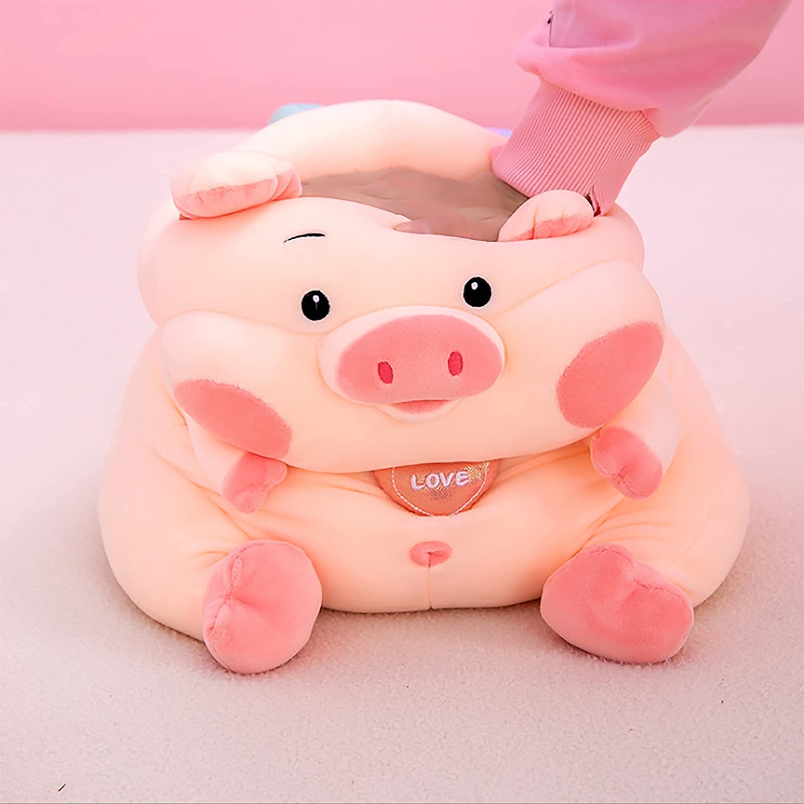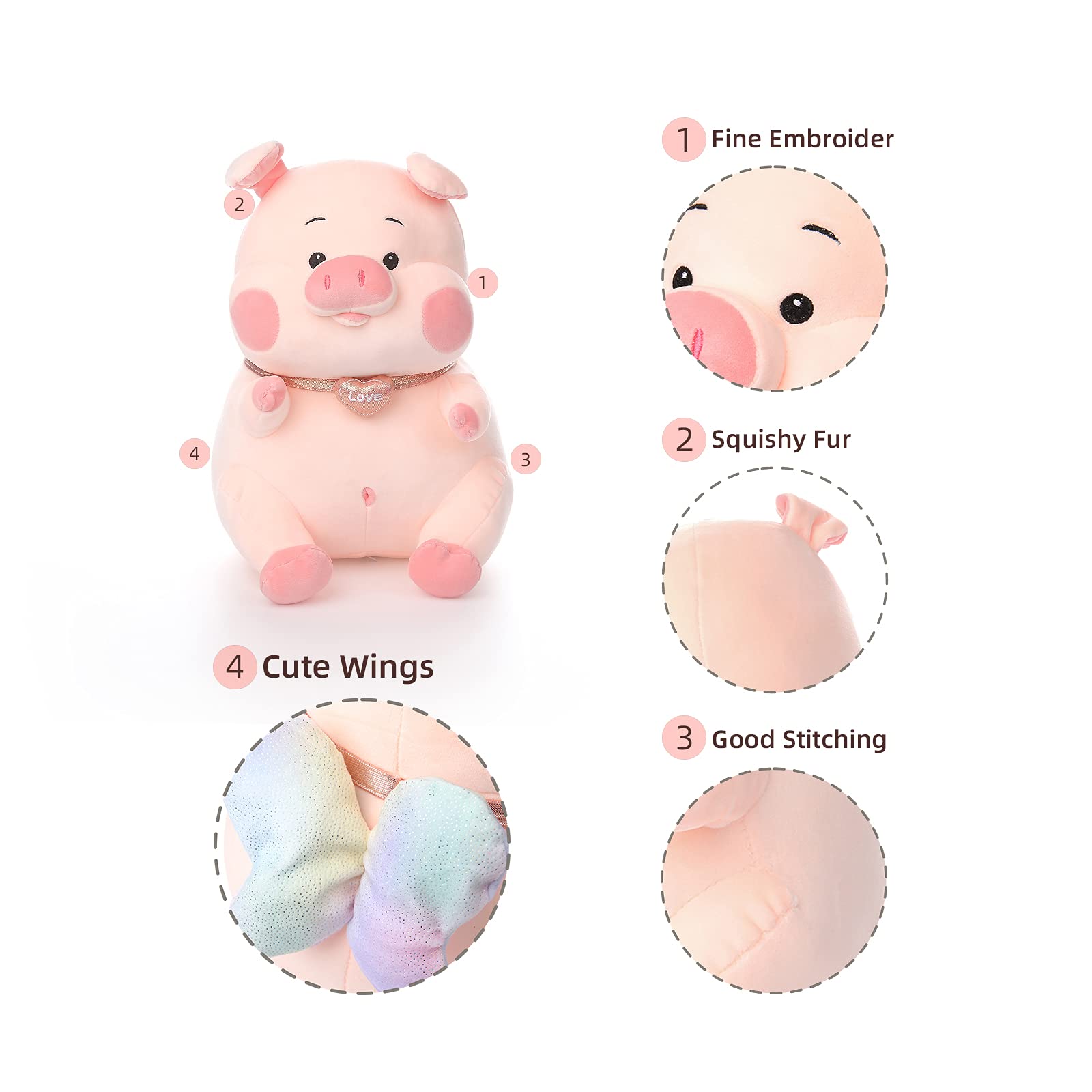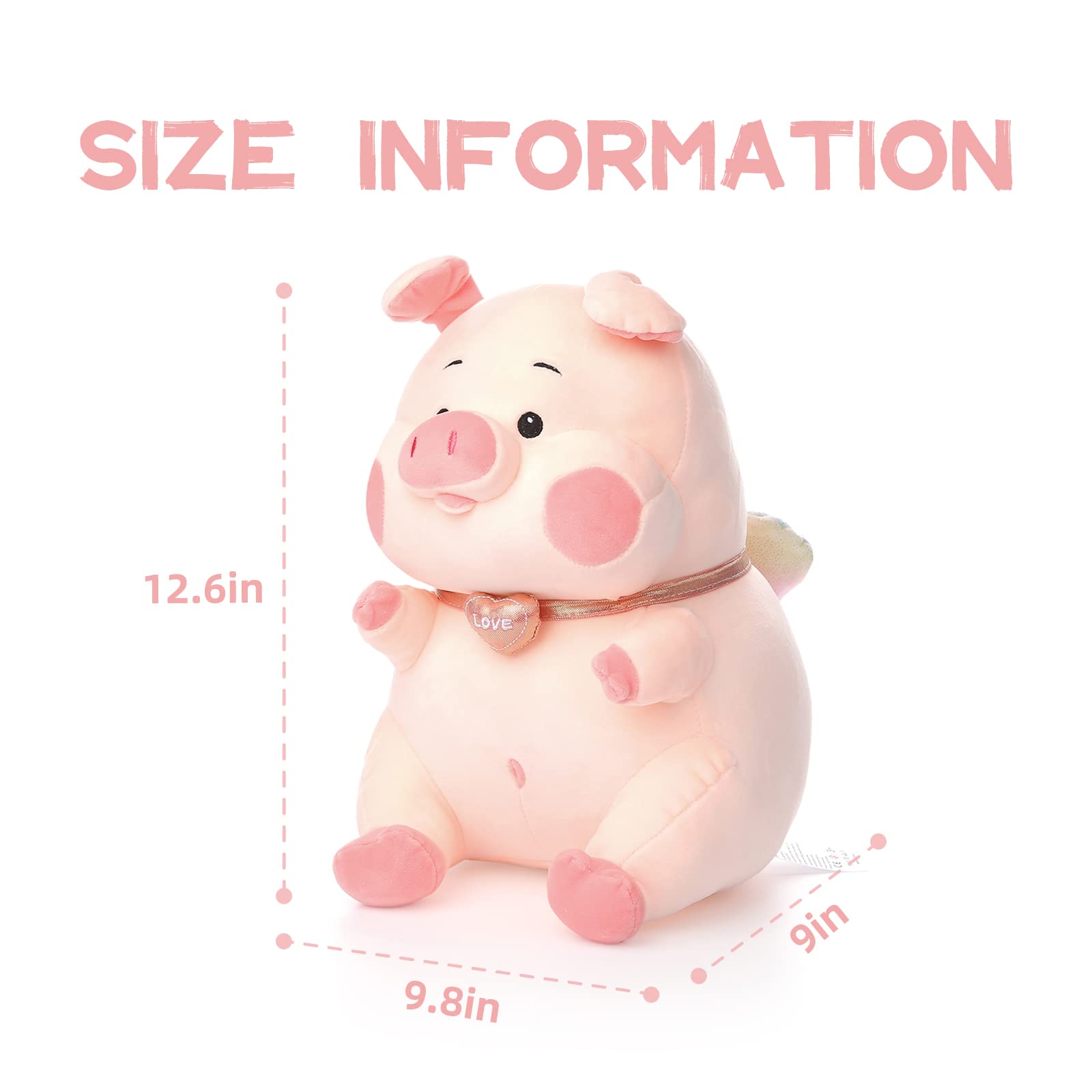 ✔️Premium Quality. Stuffed toy looks cute, cuddly and adorable. The plush pig is super soft, durable and will not easily tear or rip and can withstand chewing and similar abuse. A medium-sized, floppy-bodied, durable pig pillow will be more interesting than one with delicate pieces or material.