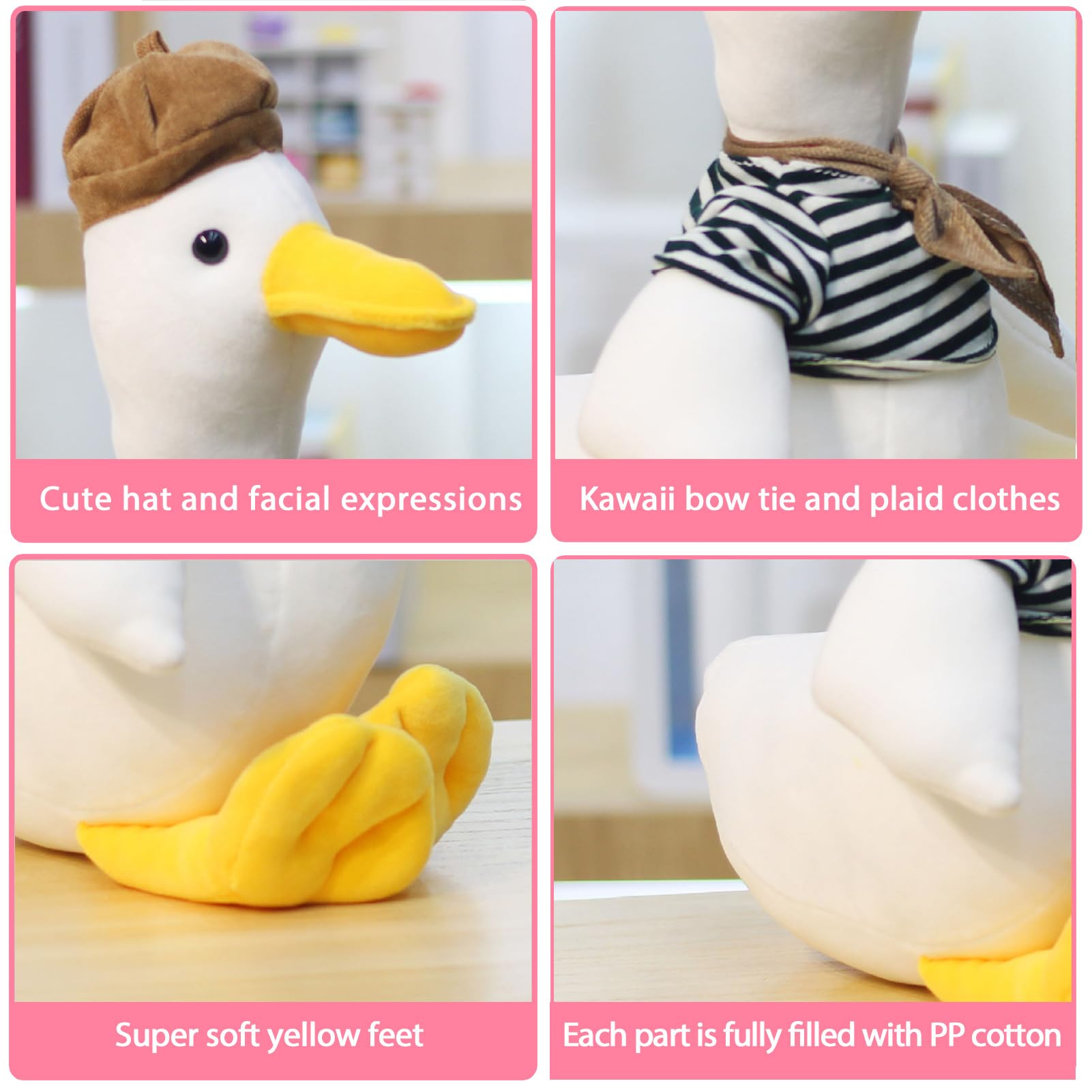 【Dressed Goose】Goose plush toy design breaks the traditional image, wearing a hat dressed white goose more lovely, it has a long beak, super soft limbs, the neck also tied a bow tie, sitting dressed goose looks like a gentleman goose, very interesting.