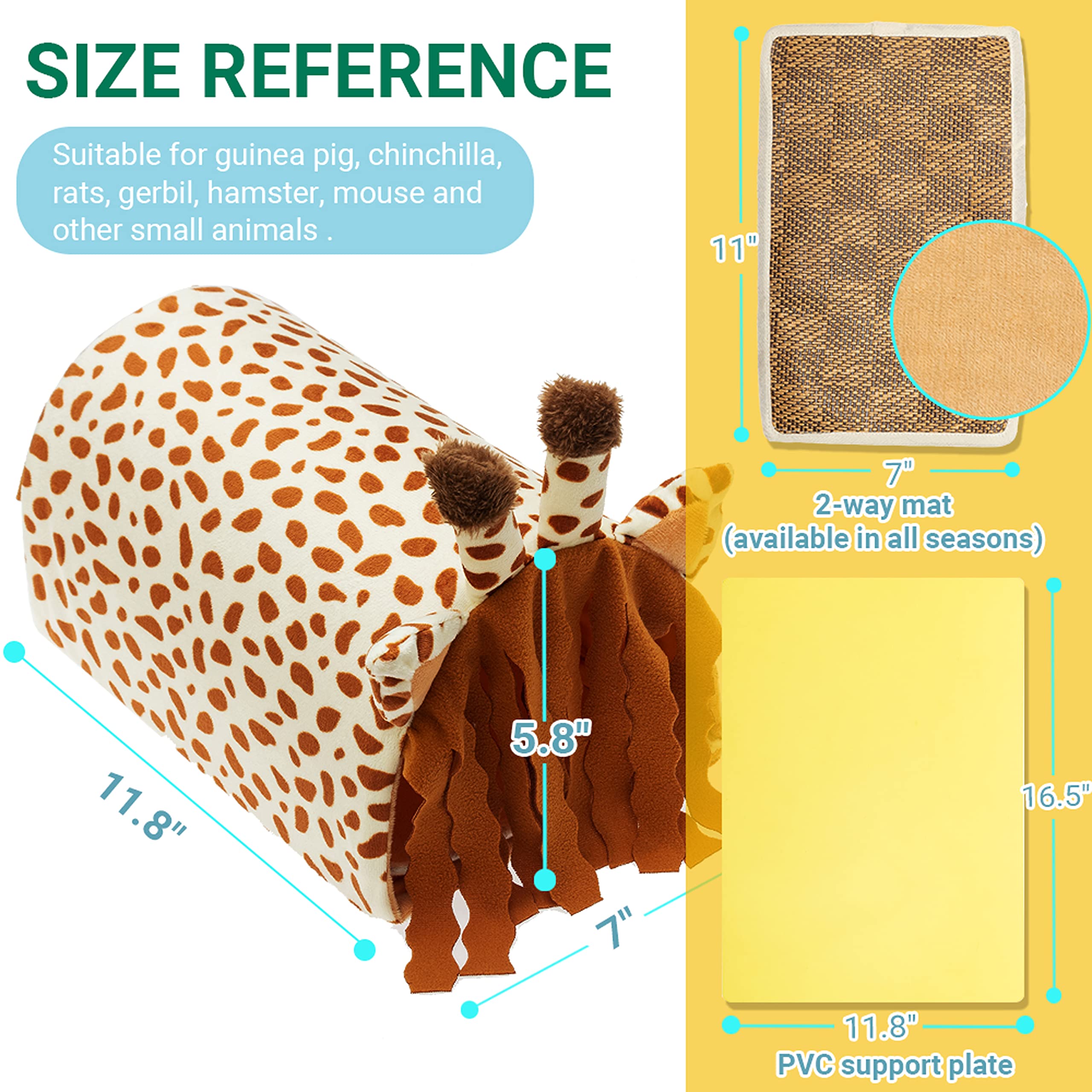 TUNNEL HOUSE SIZE REFERENCE 🏡 small animal tunnel (length: 11.8 ", height: 5.8", width: 7"), the included dual-purpose mat (length: 11", width: 7"). Suitable for guinea pigs, chinchillas, rats, gerbils, hamsters, mice, hedgehog,parrot and more small animals.