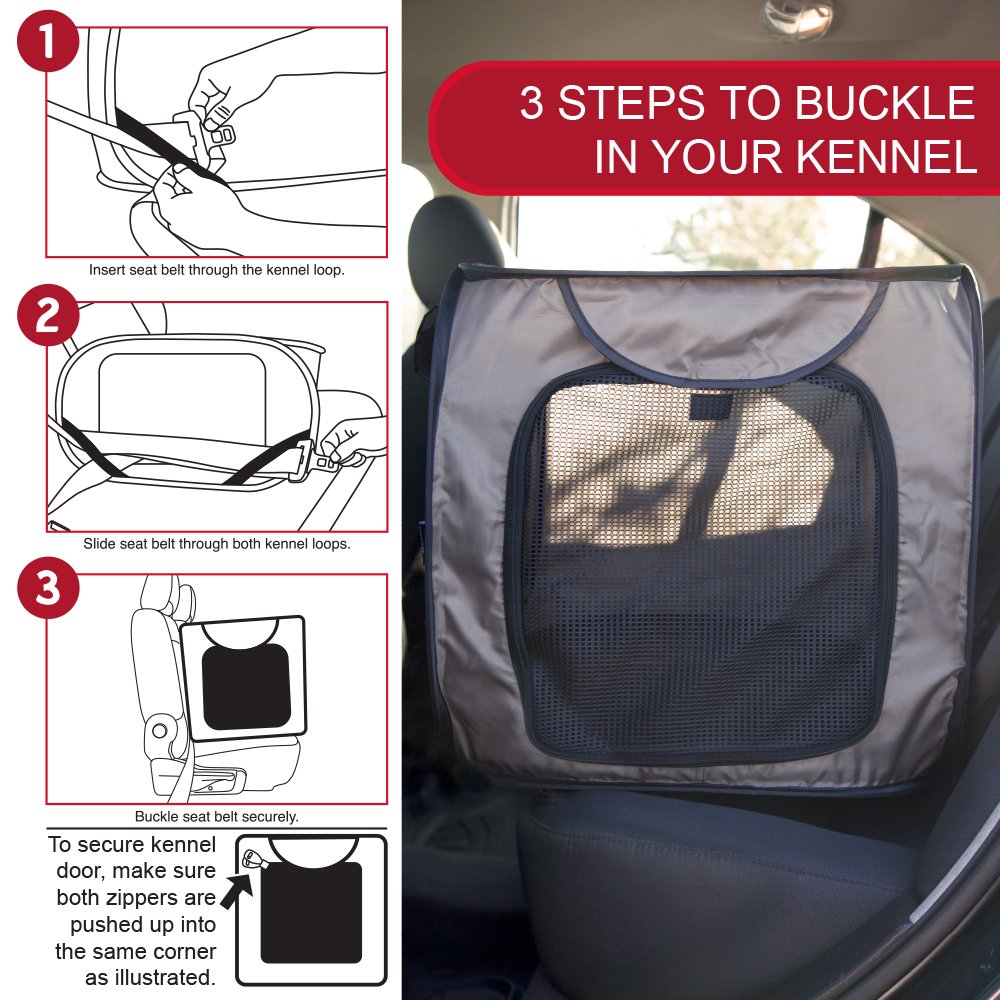 Note: the car seat pet crate is no safer than placing your pet on the back seat alone. It isn’t additional protection in the case of an accident – so please drive safely!