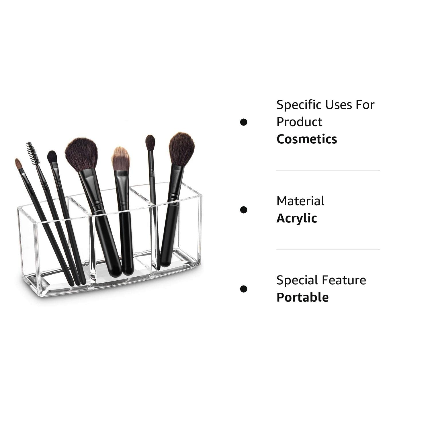 With 3 open slot compartments that can be used for eyelash brushes, lipsticks, eyeliner pencils, contour brushes and other lattice Cosmetics.