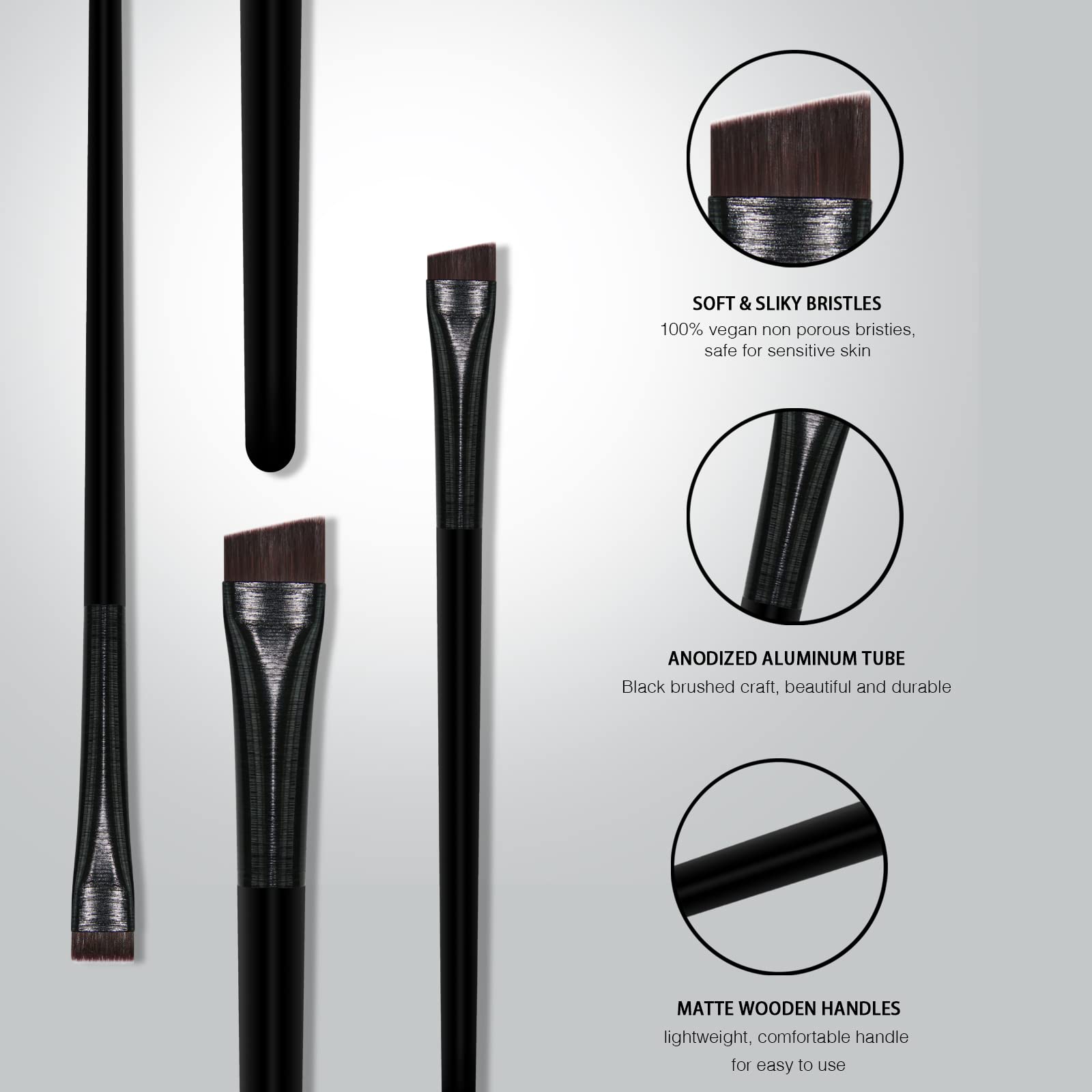 ✨PROFESSIONAL EYELINER BRUSH -- Brow brushes for eyebrows kit meets different needs. Two professional grade angled eyeliner brushes are for shaping, defining eyebrows and eyeliner. One angled eyeliner brush is for grooming and shaping. The different widths of angled eyeliner brush and flat makeup brush, ultra-thin shape like a blade, help you to create the finest and most precise lines, even in the tightest, smallest, and hard to reach areas of your eyes or lashes.