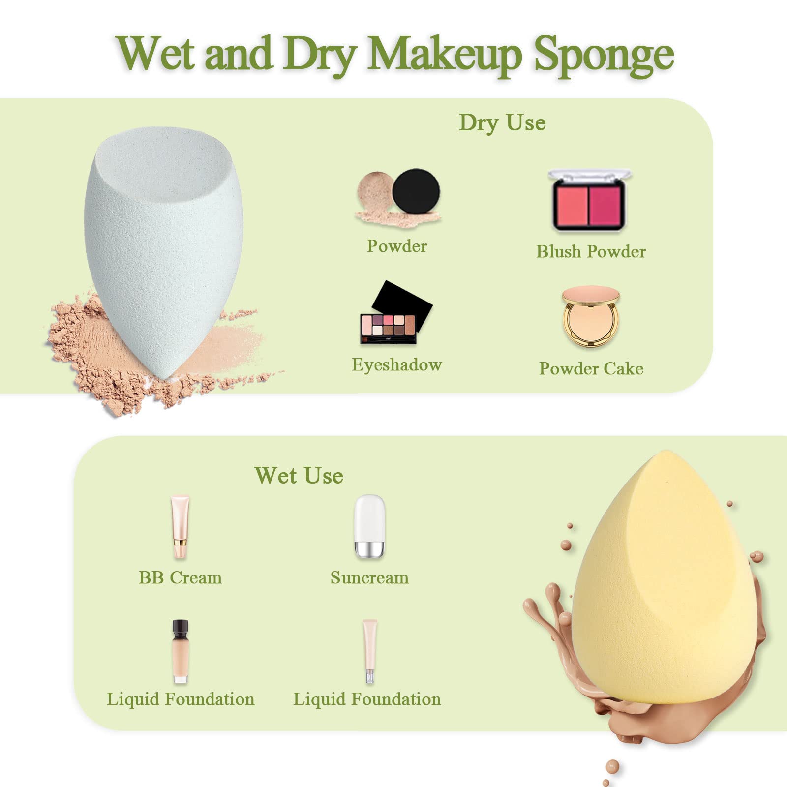 【Must-have for makeup】: makeup sponges with a storage bottle for every set, the beauty blender can be used wet or dry, depending on your preference and the type of makeup product you are using. makeup sponge sets are a must-have for anyone looking to achieve a flawless and natural-looking makeup finish.