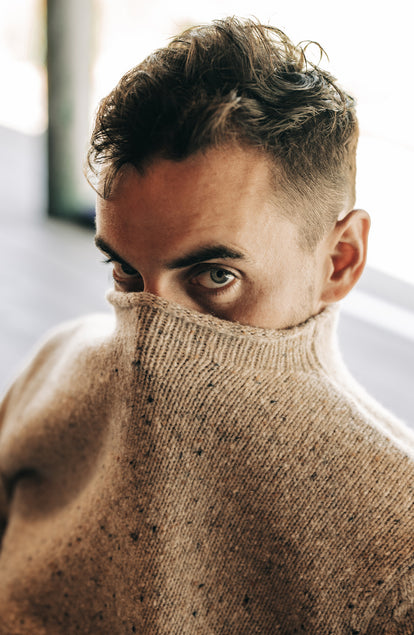This merino wool dominant blend is lightweight and, thanks to a healthy helping of nylon, surprisingly durable. A touch of alpaca rounds out the package and lends The Seafarer some natural flecking for a boost in visual wallop. Cut to an easy-wearing mock-neck silhouette and finished with knit detailing at the collar and cuffs.