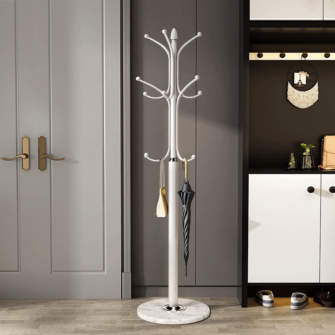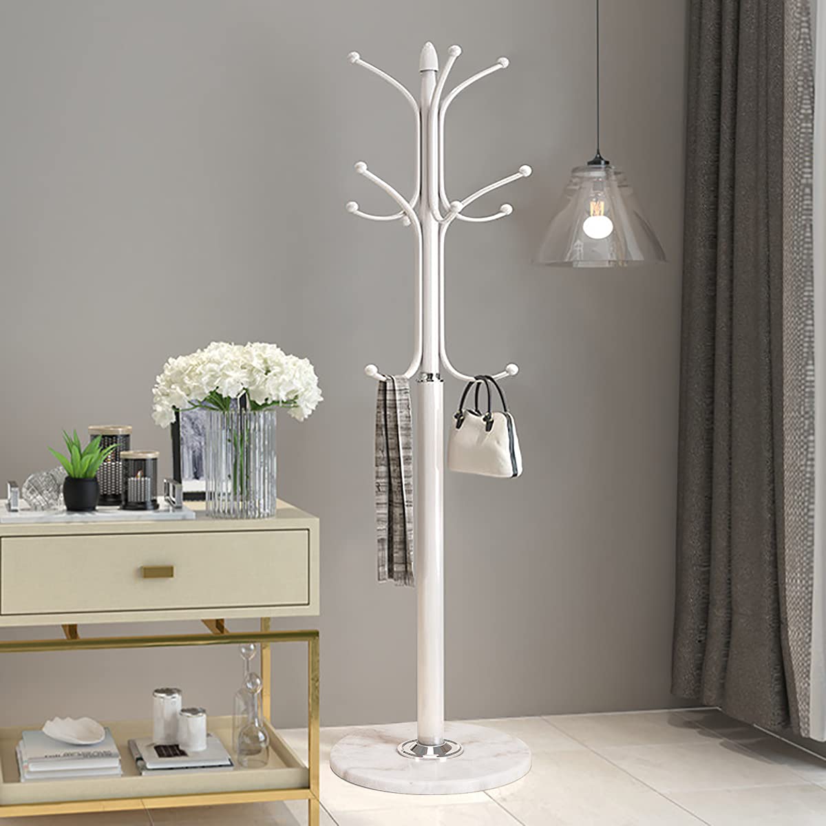 Stylish & Simple Coat Rack ➤ This metal coat rack is designed in stylish and simple style, the bright polished paint and natural marble make it so generous. This luxury coat hanger can perfectly match with a variety of decoration styles. 12 hooks easily meet your daily hanging needs, just placed it at the door, beside the bed, in the living room, etc., create a more modern home.