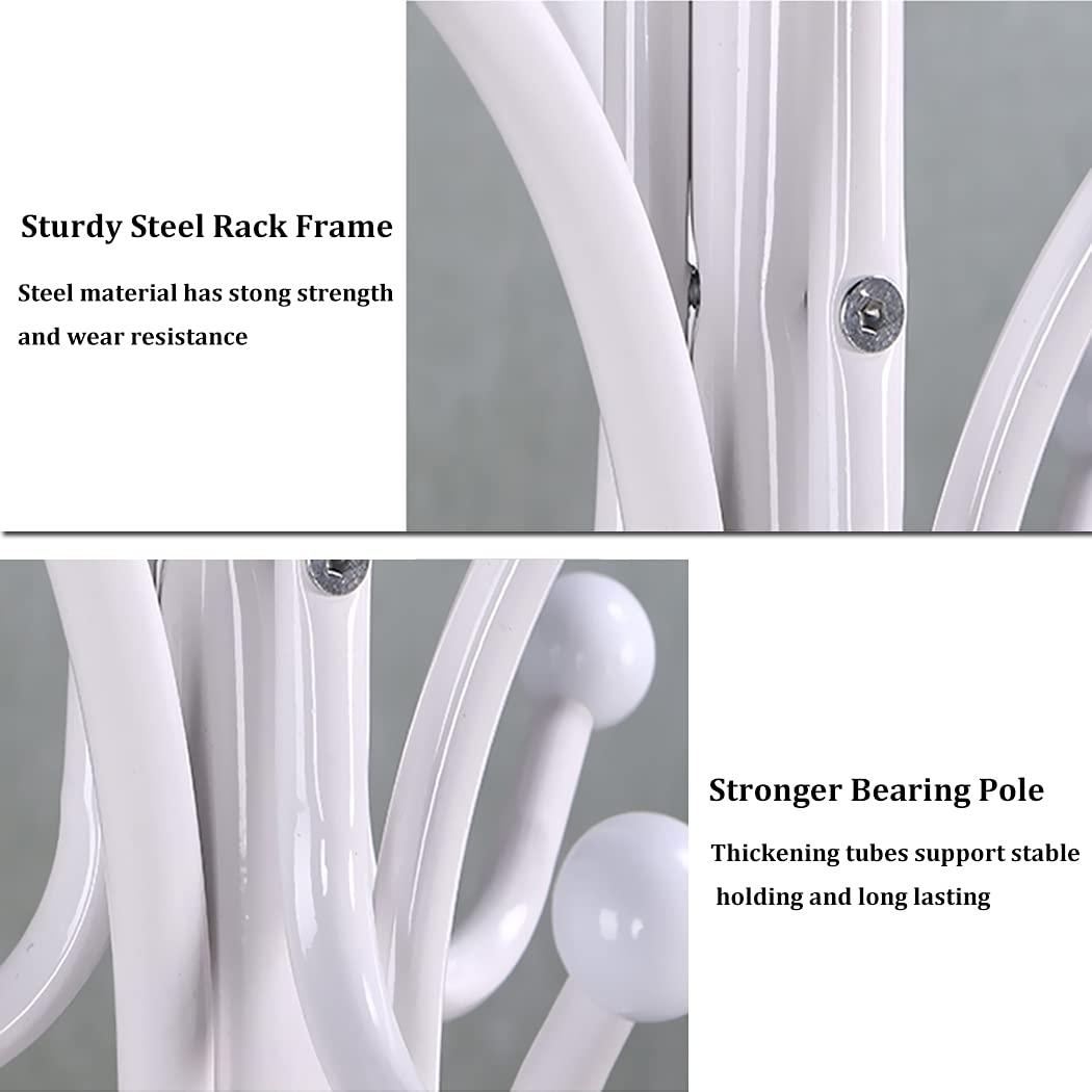 12 Hooks with Smooth Ball on Top ➤ The free standing coat rack is small in size and powerful in storage. 12 hooks are designed in a staggered level, which can make full use of the small space and hang more items. Down jackets, thick coats, big bags, umbrellas, and scarves are all hung at ease, with excellent bearing capacity. The unique small ball on the top of the branches, cares for your clothes carefully, protects your clothes from being scratched.