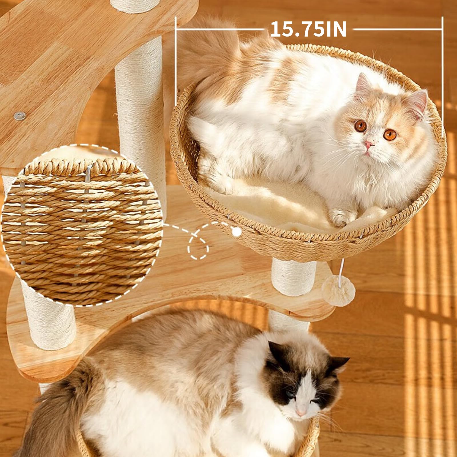 Crafted from high-quality solid oak, this cat tree offers a luxurious scratching surface, satisfying your cats' natural instincts while protecting your furniture. The robust scratching posts are durable and designed to endure vigorous scratching behaviors.