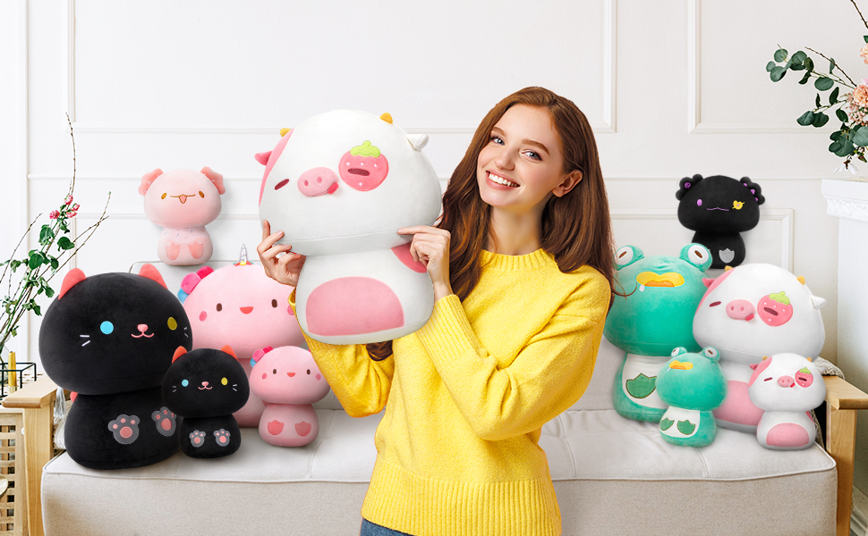 【Best Gift】: Many people will love this cute plushies pillow toy, which can be used for playing, and as a cute pillow for reading, or watching TV. I believe it will be a sweet gift for Halloween, Christmas, Thanksgiving, and birthdays. your friends, family, and loved ones will love it very much.