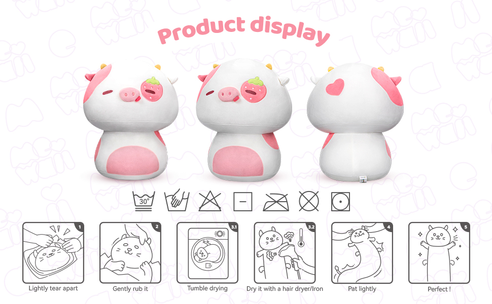 【Cow Plush Toys】: Our cute kawaii plush pillow toy is elaborately made of spandex super soft fabric and filled with down cotton. When you hold it in your arms, you will feel comfortable and elastic, with a smooth feel and delicate texture.