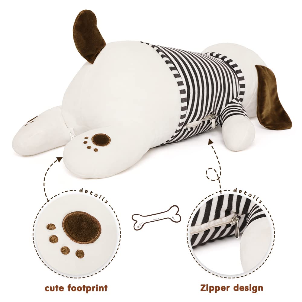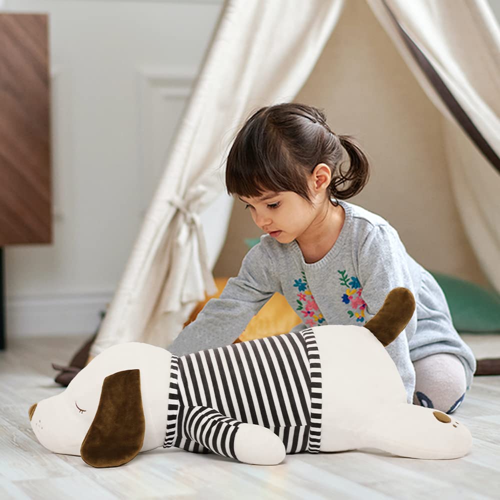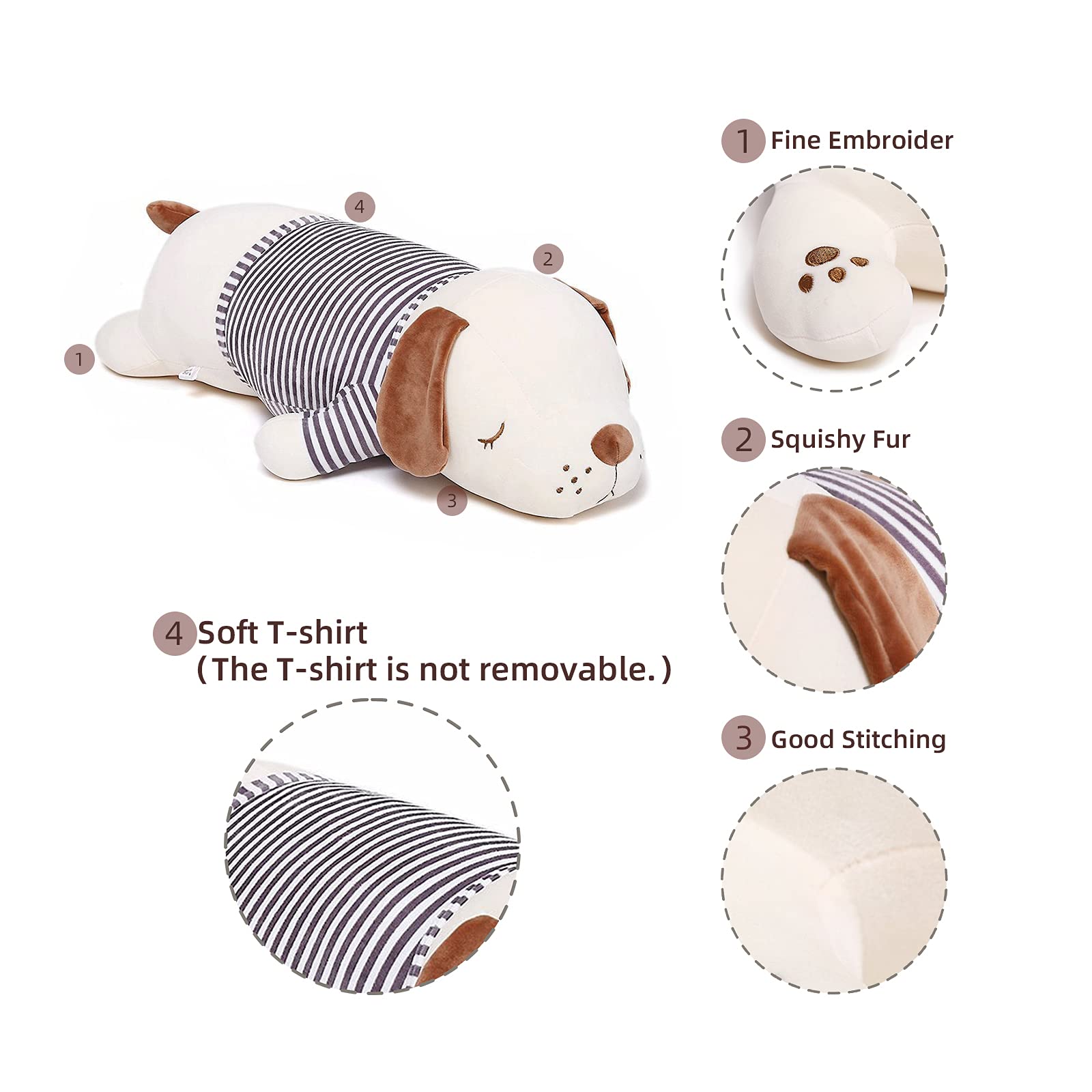 【Incredibly Soft Material】: Our Plush Puppy Stuffed Animal is crafted from high-quality, super-soft plush material that provides a delightful touch, perfect for cuddling and comforting. This adorable toy dog serves not just as a plushie but also doubles as a warm, huggable pillow, offering ultimate comfort.