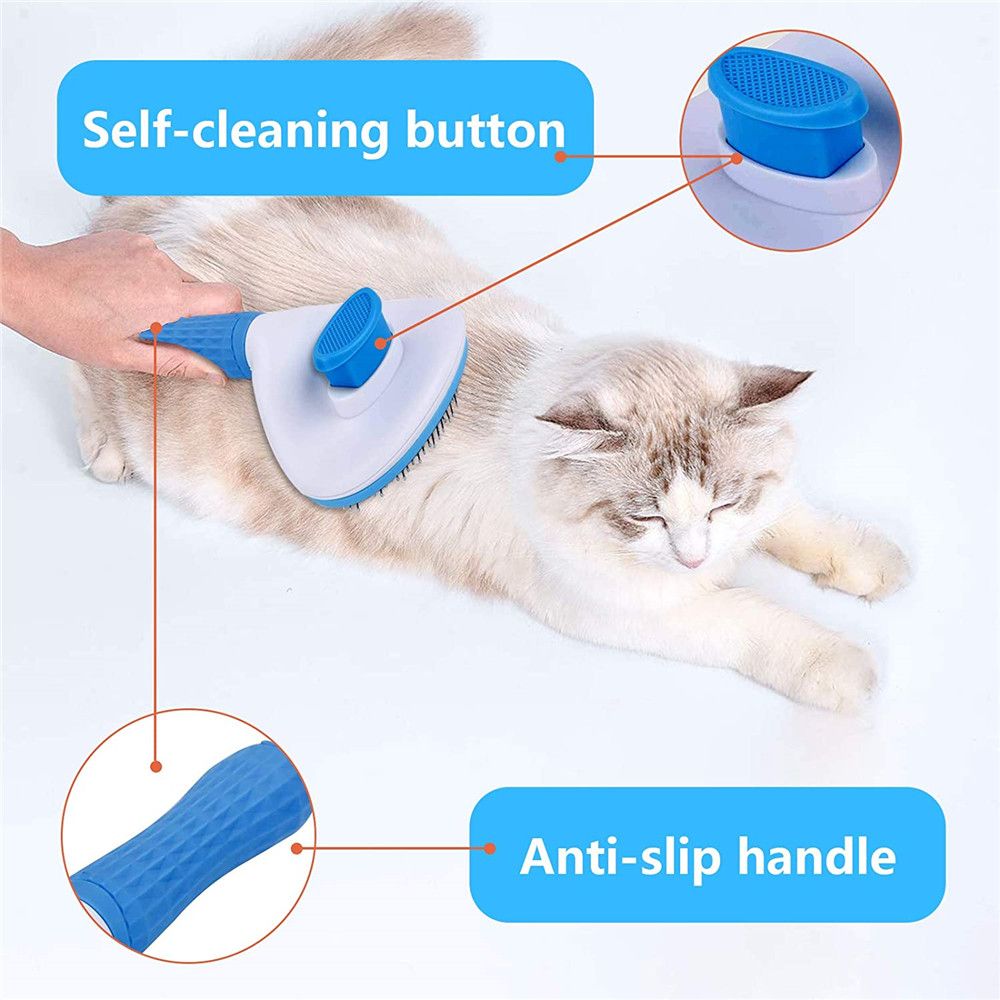 【Comfortable and Nonslip Handle】 Our cat shedding brush is designed with a comfort-grip and nonslip handle, and this self cleaning cat brush also has a massage function for your hand and you won't get tired easily when you brush your pet.