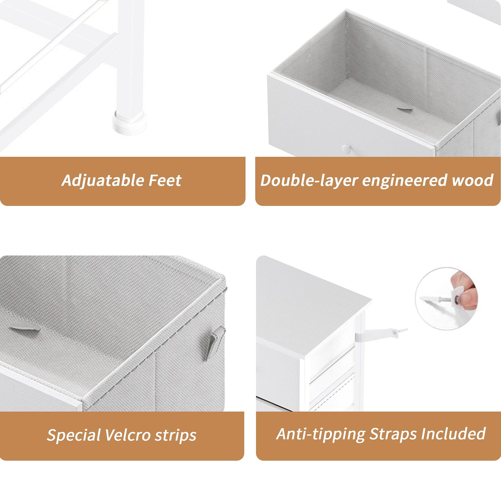 [Strong and Sturdy System] : High quality steel frame,each drawer has a special Velcro strips to keep the drawers always at their slots,super easy to slide in and out but will not bend or fall down. anti-tipping straps ensure the safety of your energetic kids.