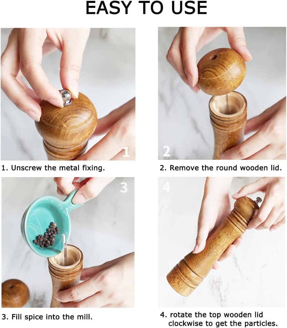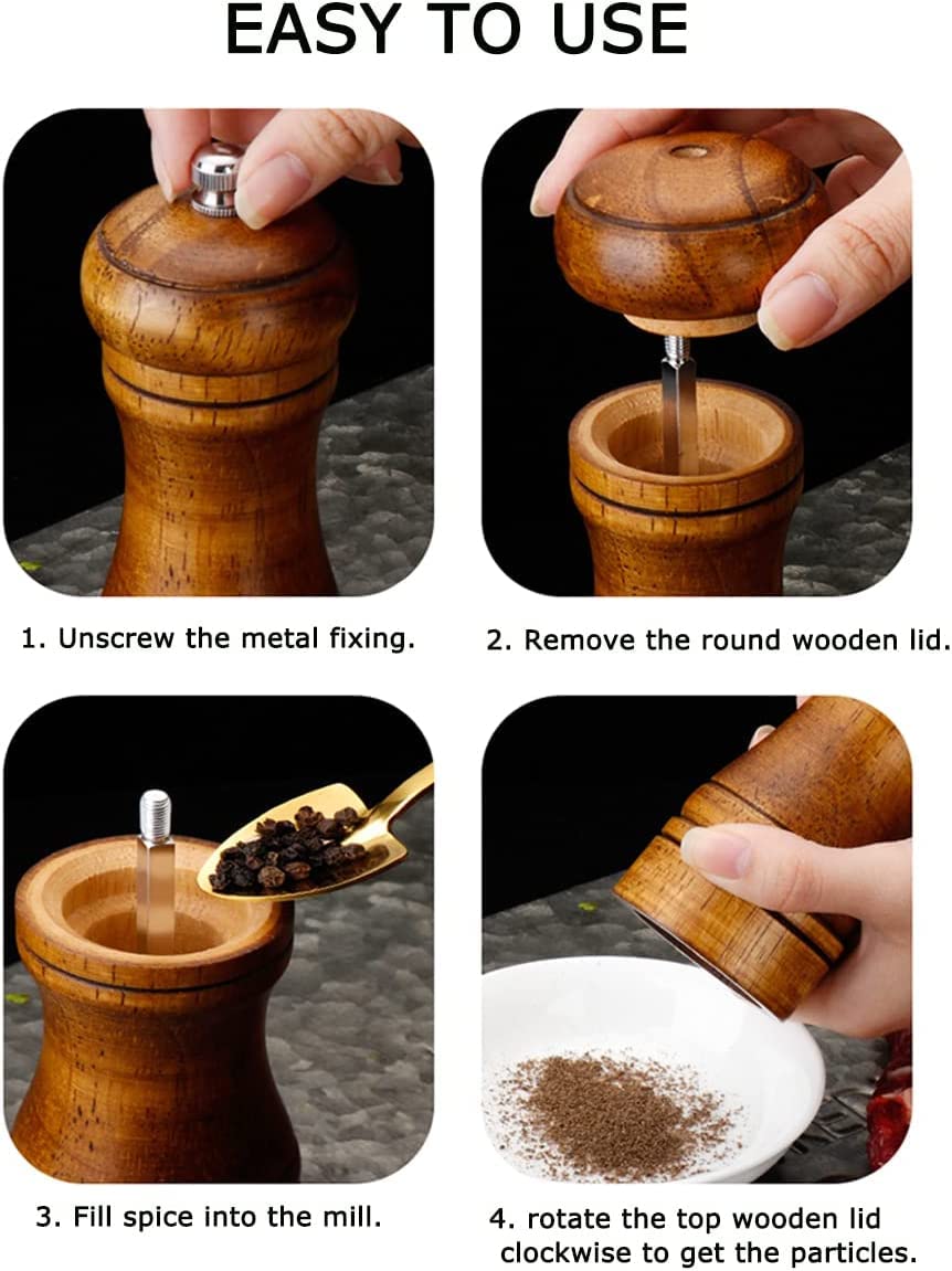 【EASY TO USE】 - Just unscrew the screw on the top and take off the cap, put some spices into mill; Put the cap and screw back and screw it, rotate the cap and the powder will come out.