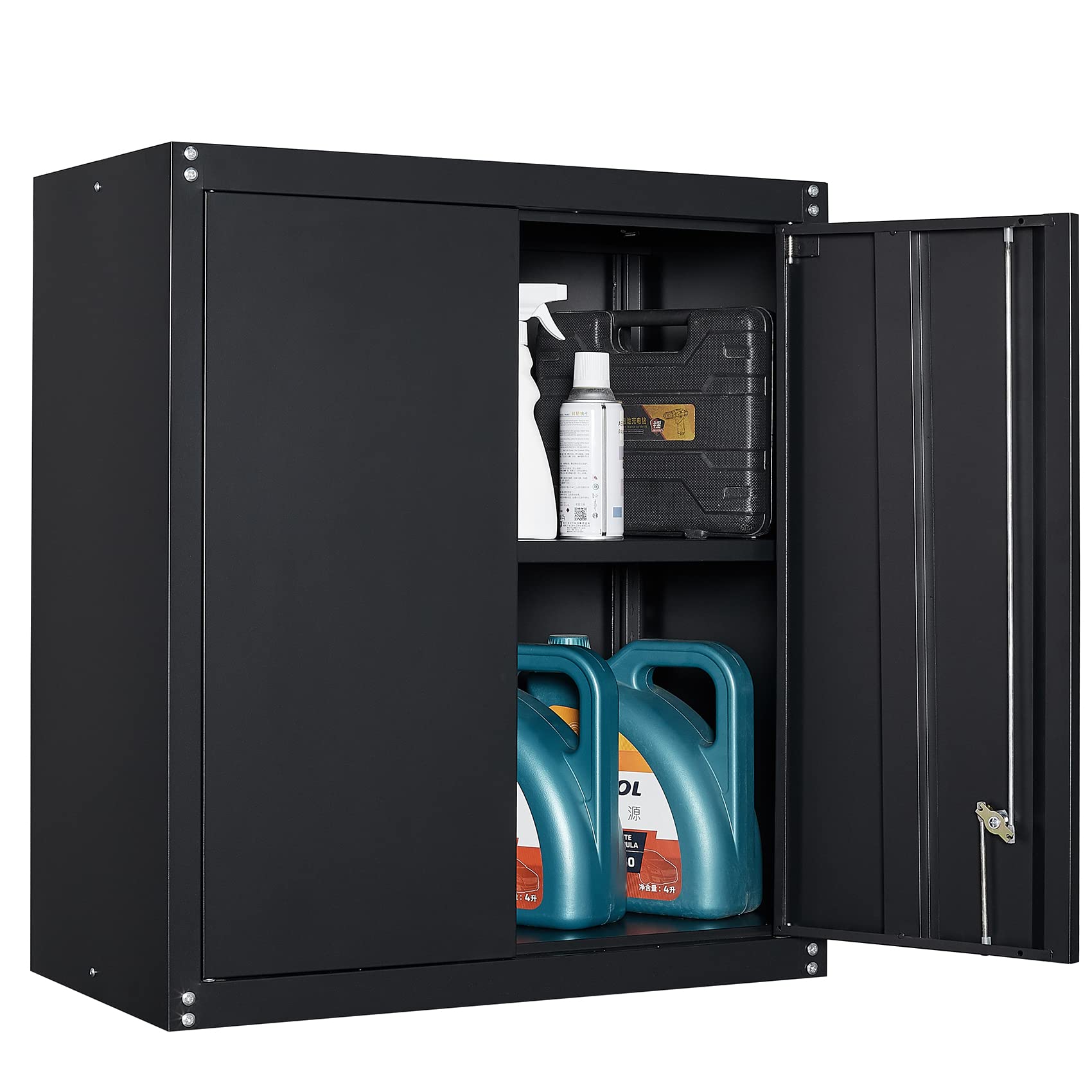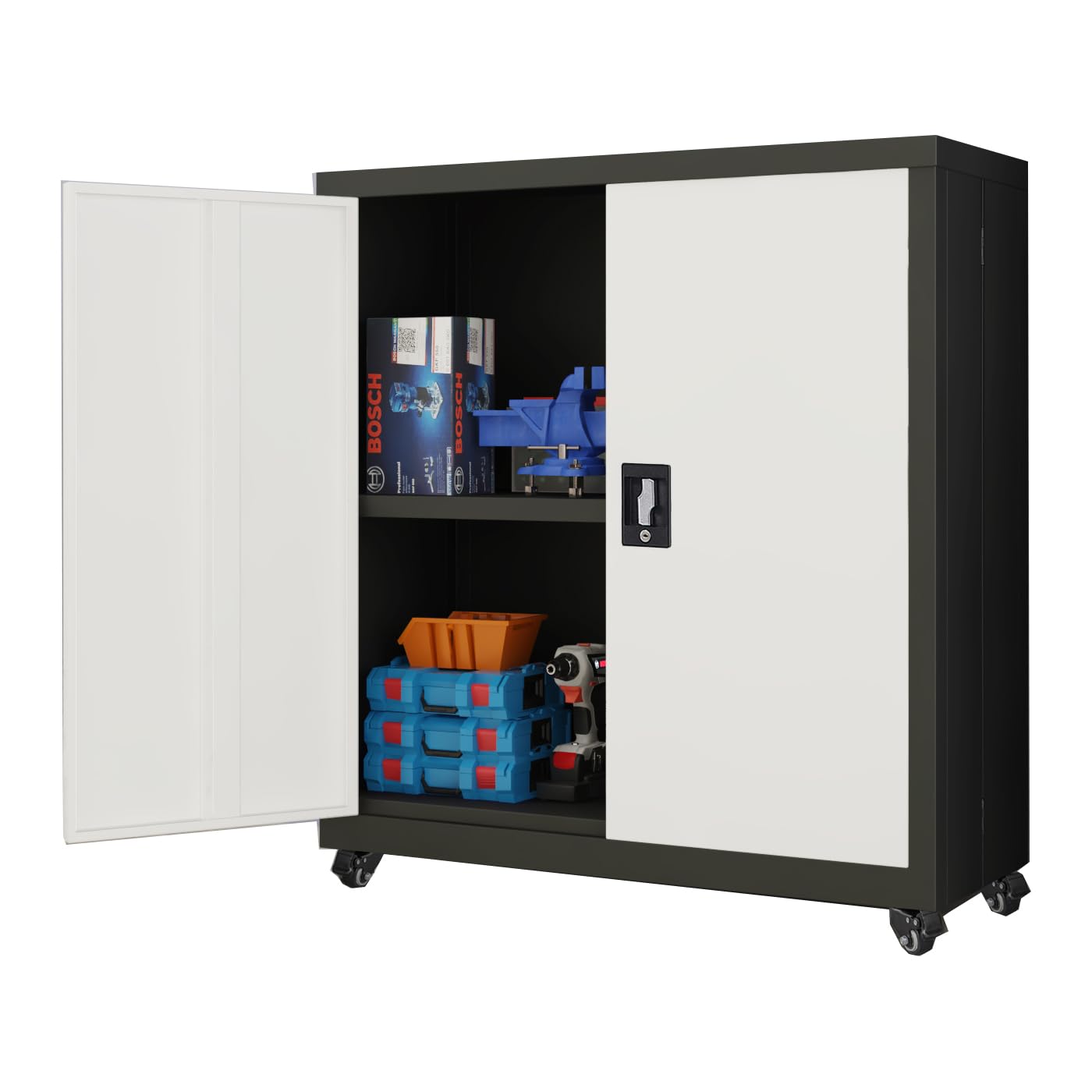 Metal Cabinet with Lock, Small Metal Storage Cabinet with 2 Shelves, Locking Metal Cabinet with Wheels for Office-Furniture