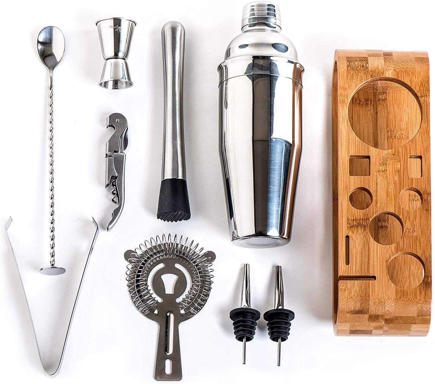 Bar Tool Set with Stylish Bamboo Stand - Perfect Home Bartending Kit-kitchen