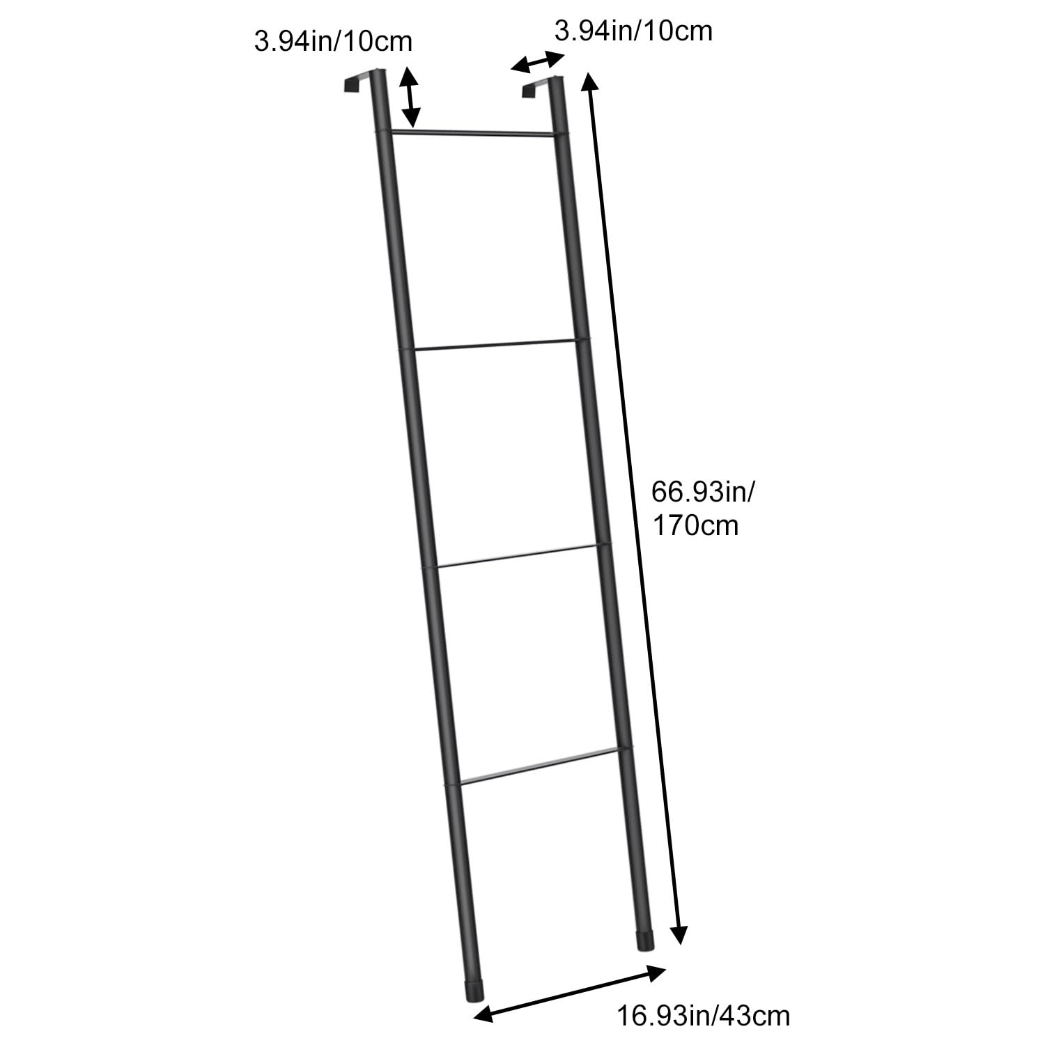 Black Metal Blanket Ladder - Free Standing Wall Leaning Ladder Towel Rack for Decorative Bathroom