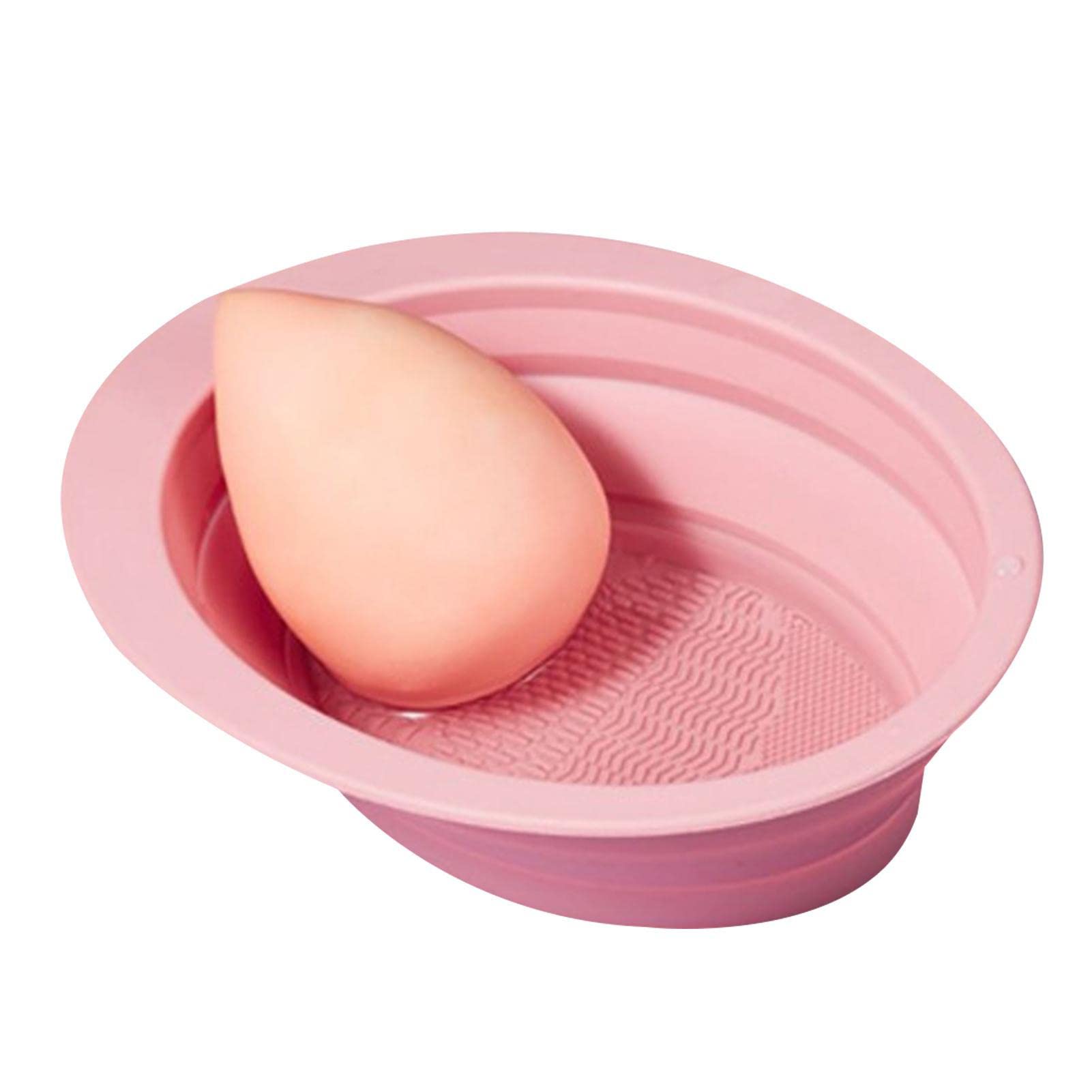 Silicone Makeup Brush Cleaners Mat (Pink), Foldable Makeup Brush Cleaning Bowl,Cosmetic Brush Cleaner(pink)