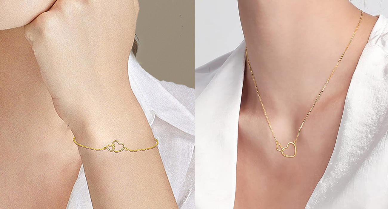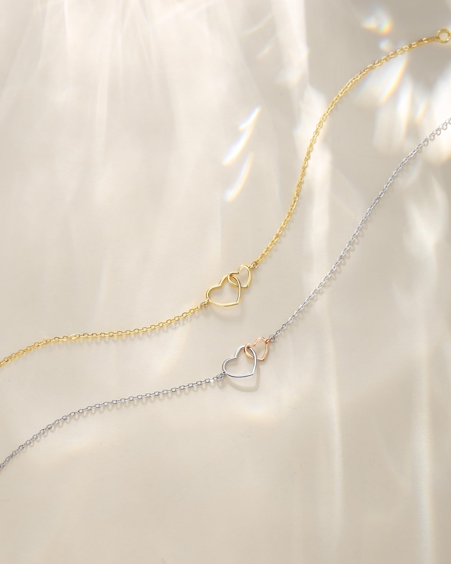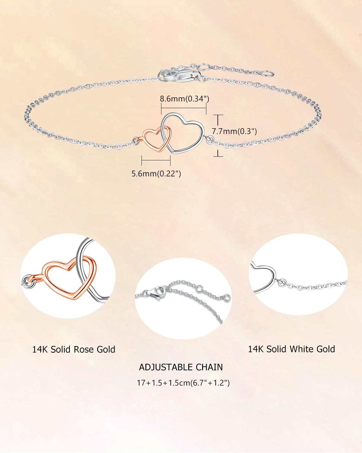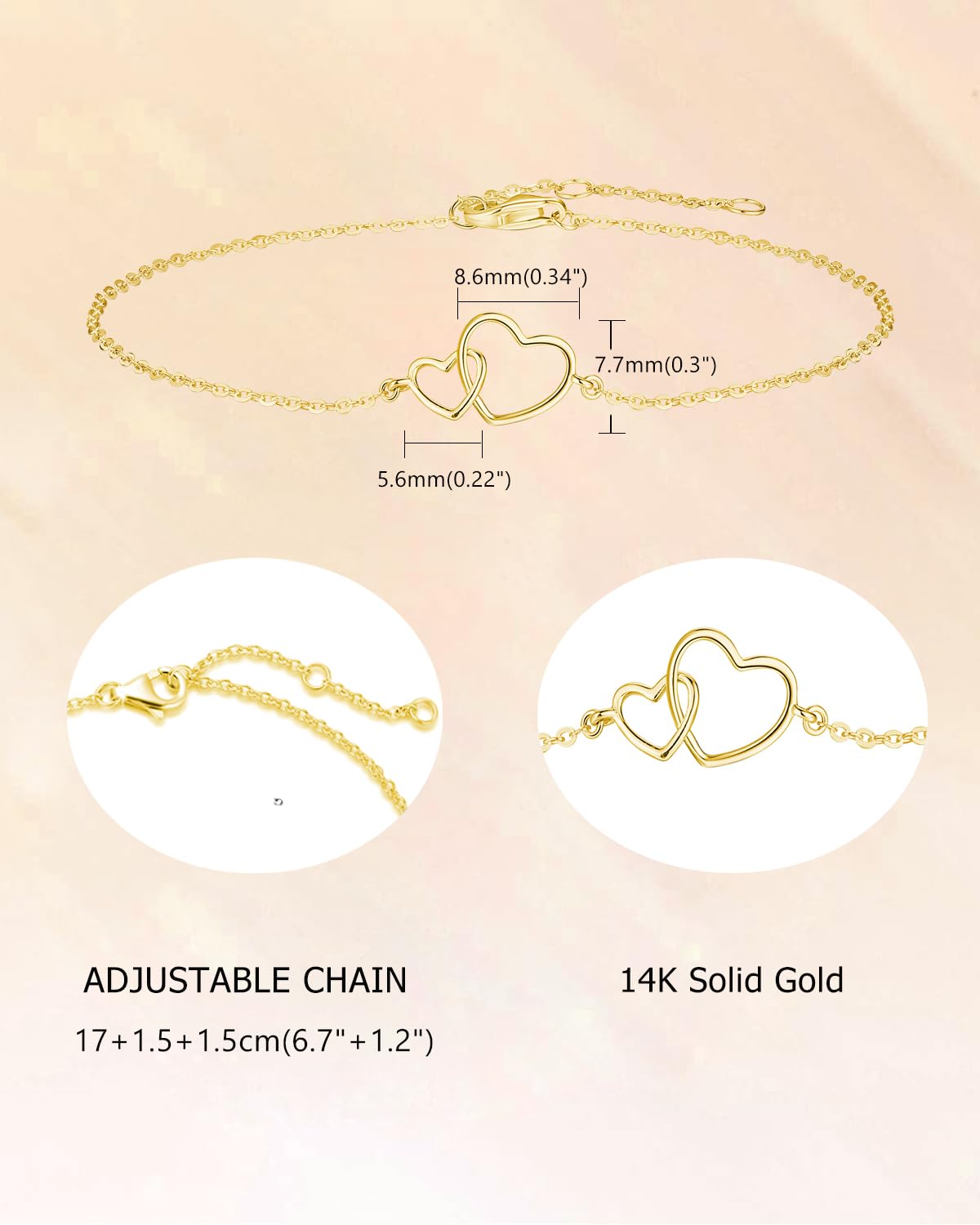 - ❤14K Solid Gold Bracelet❤ Love Heart bracelet, 14K solid gold, all metals are lead free, nickel free and hypoallergenic. It is a dainty, pretty two heart bracelet.