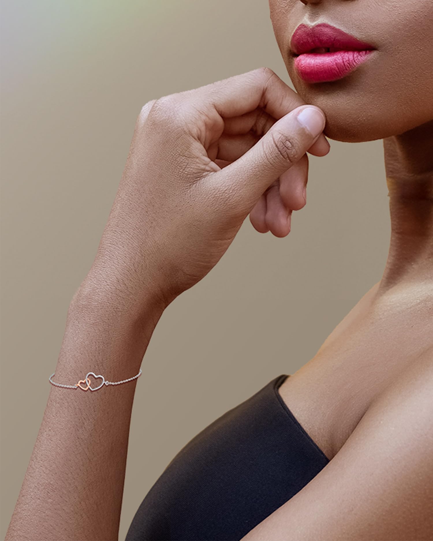 - ❤Infinity Heart Bracelet❤ A pair of entwined heart outlines, is a sweet symbol of your heart-to-heart. Locked in a loving embrace, this double heart pendant is a meaningful look for her.