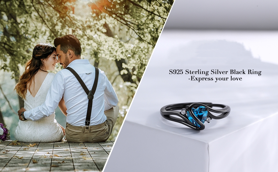【❤Sleek And Sophisticated Design❤】:The black color of the ring represents elegance and sophistication, while the heart-shaped synthetic blue sapphire symbolizes love and loyalty. The unique combination of black and blue tones makes it an eye-catching piece of jewelry that's sure to turn heads.