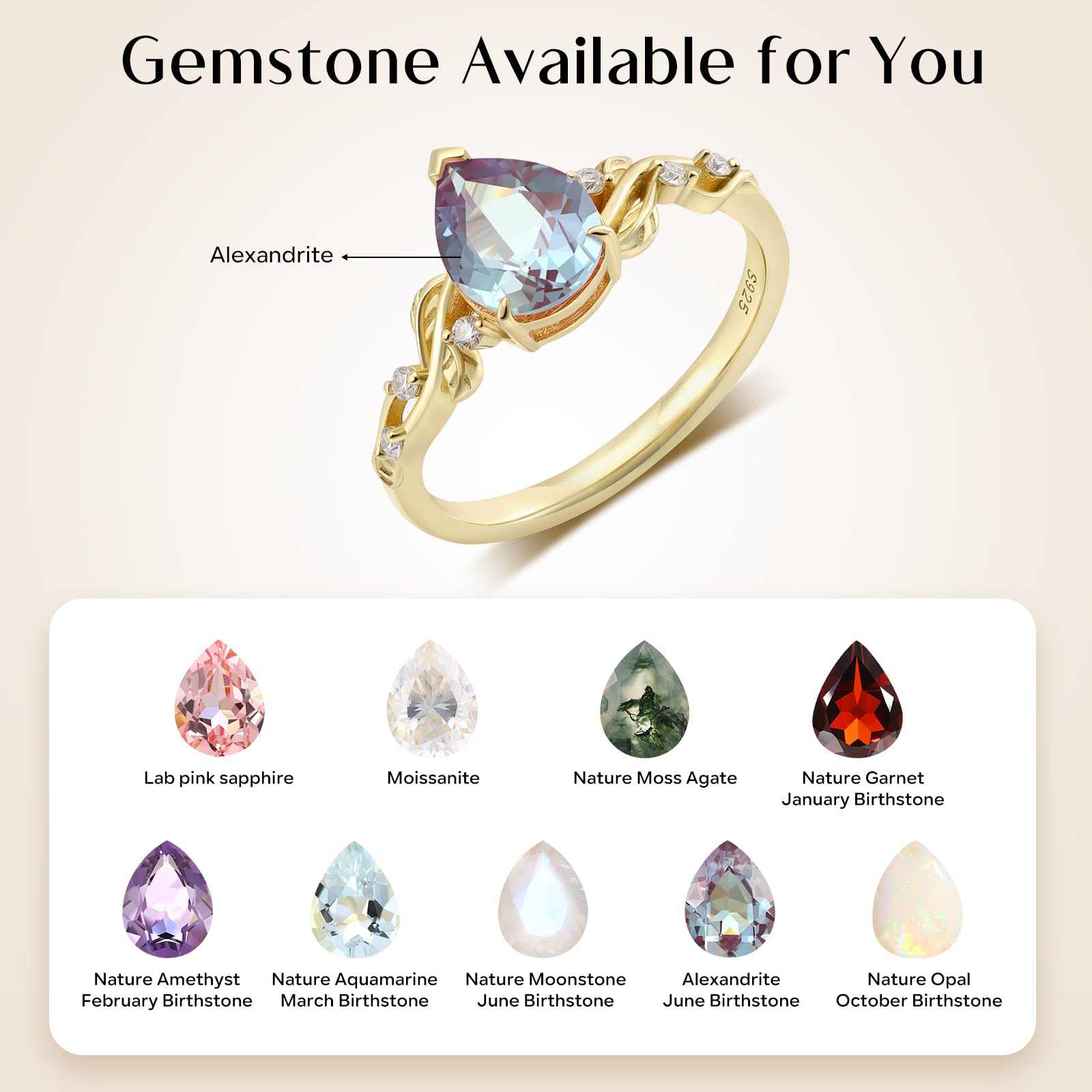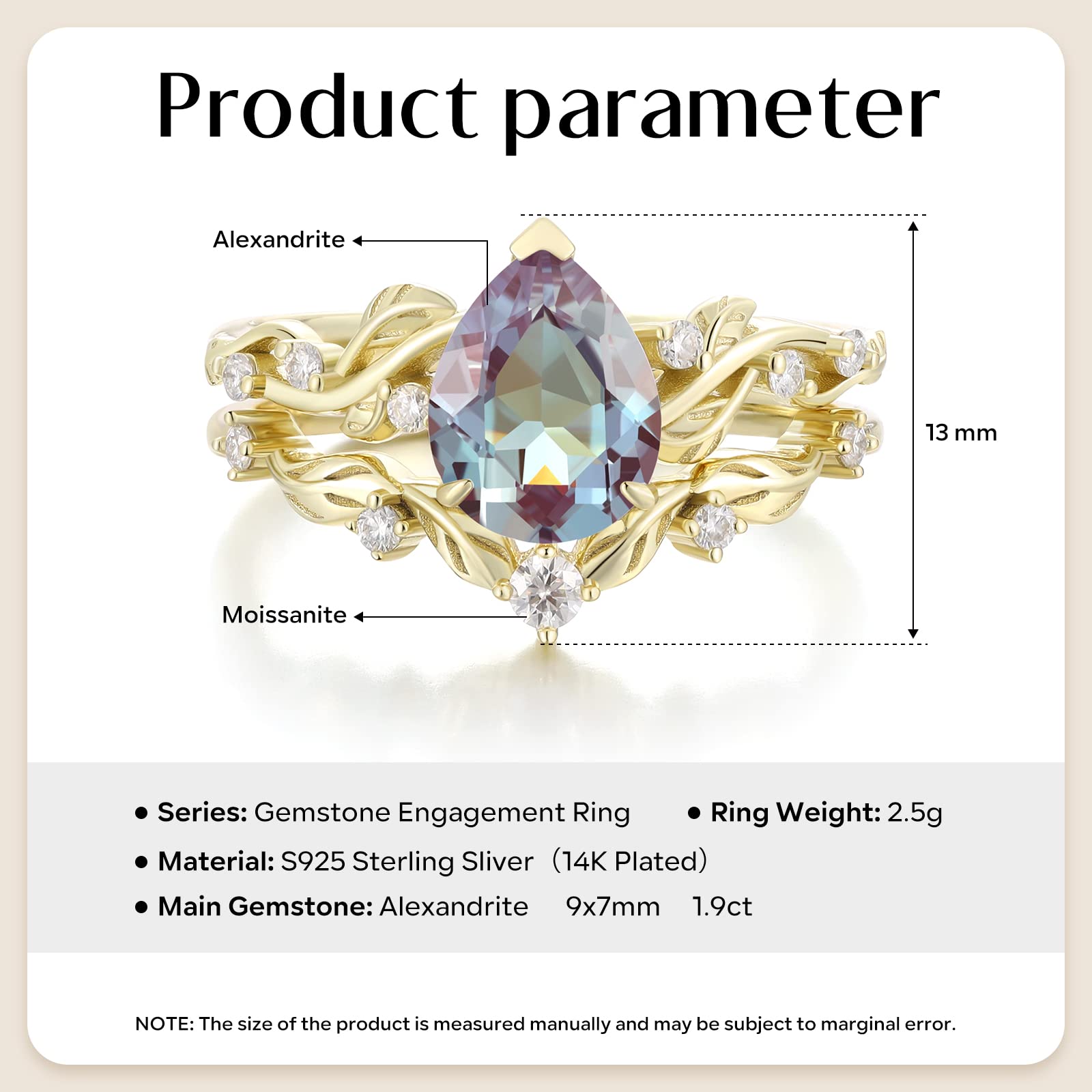 - 💎【Alexandrite Ring Size】➣Ring size 5/6/7/8/9/10,Main stone size: 9*7mm (1.9 carat Pear)