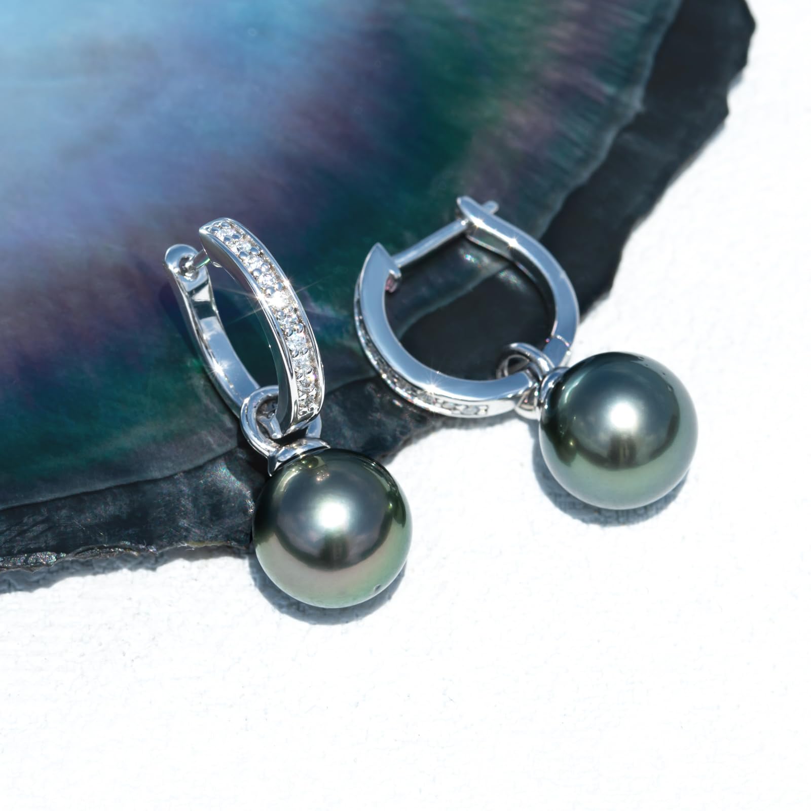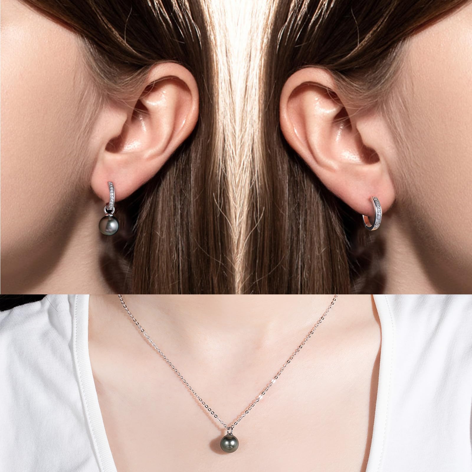 【Dazzling and sparkling】:the hoop earrings are crafted in sterling silver and hand-set with 9-10mm black Tahitian pearl drop complemented by moissanites set upon the hoop. It can be worn with or without the pearl, as the pearl can slide off the earring and be worn as a moissanite hoop earring, and also the single pearl can be the necklace pendant.