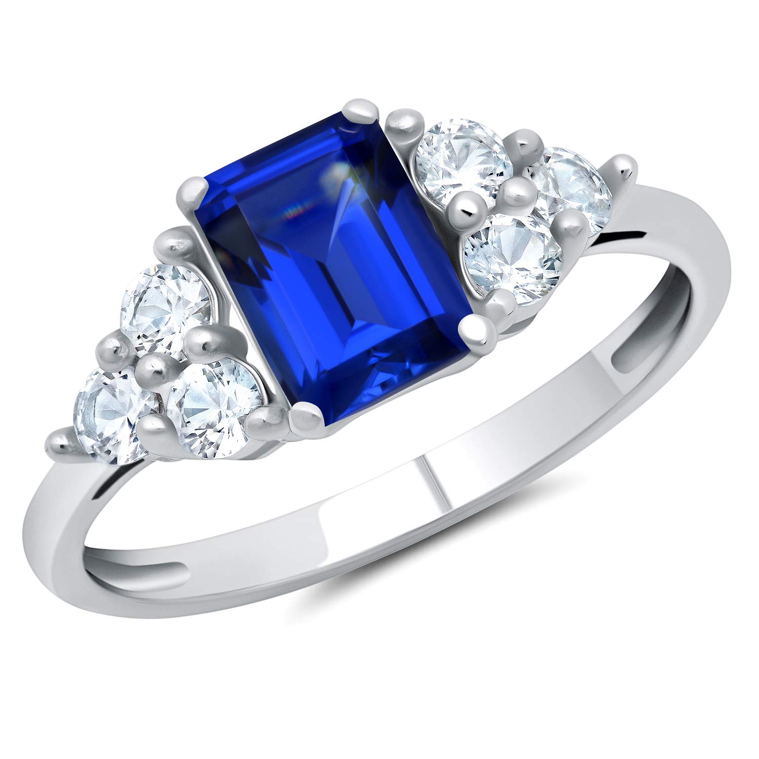 【CLASSIC & VERSATILE DESIGN】 - A true celebration of the impeccable craftsmanship behind all of timeless designs, this ring is adorned with a 7x5mm emerald-cut aquamarine center stone and round shaped 2.5mm created white sapphires on each side, with a total of 1.20 carats. Ring features a comfortable, smooth band that measures 1.8mm at the thickest point, and 1.4mm at the thinnest point.