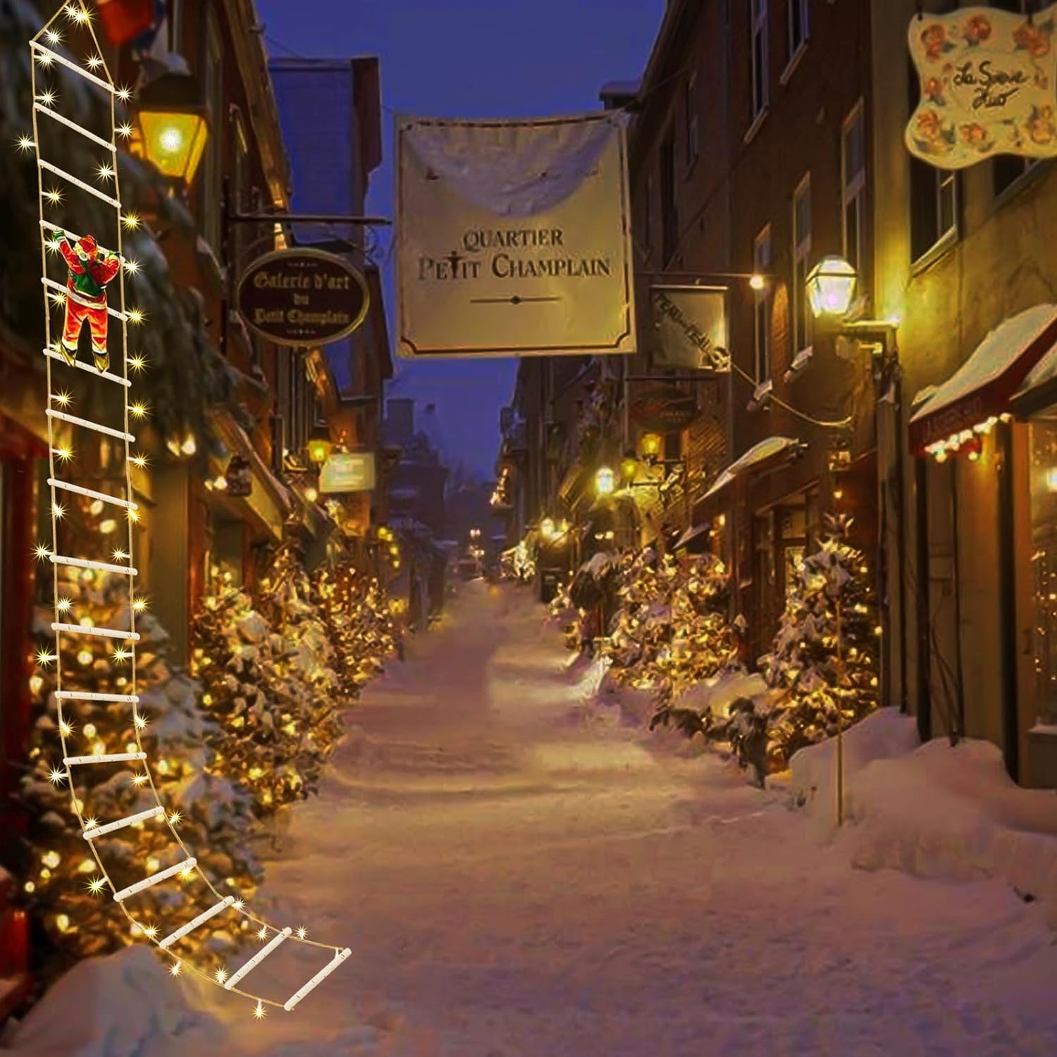 Unique-designed Solar Christmas Lights: Create a magical and Christmas atmosphere with our 2023 Newest Solar Christmas Ladder Lights now! This unique-designed solar Christmas ladder lights features a 10ft rope ladder with 232 colorful lighted LEDs, a 14.96in climbing Santa Claus and a warm white top star. Illuminate your home, garden, yard, window, walls, porch, or Christmas tree with these eye-catching outdoor Christmas decorations and enhance the Christmas festive ambiance.