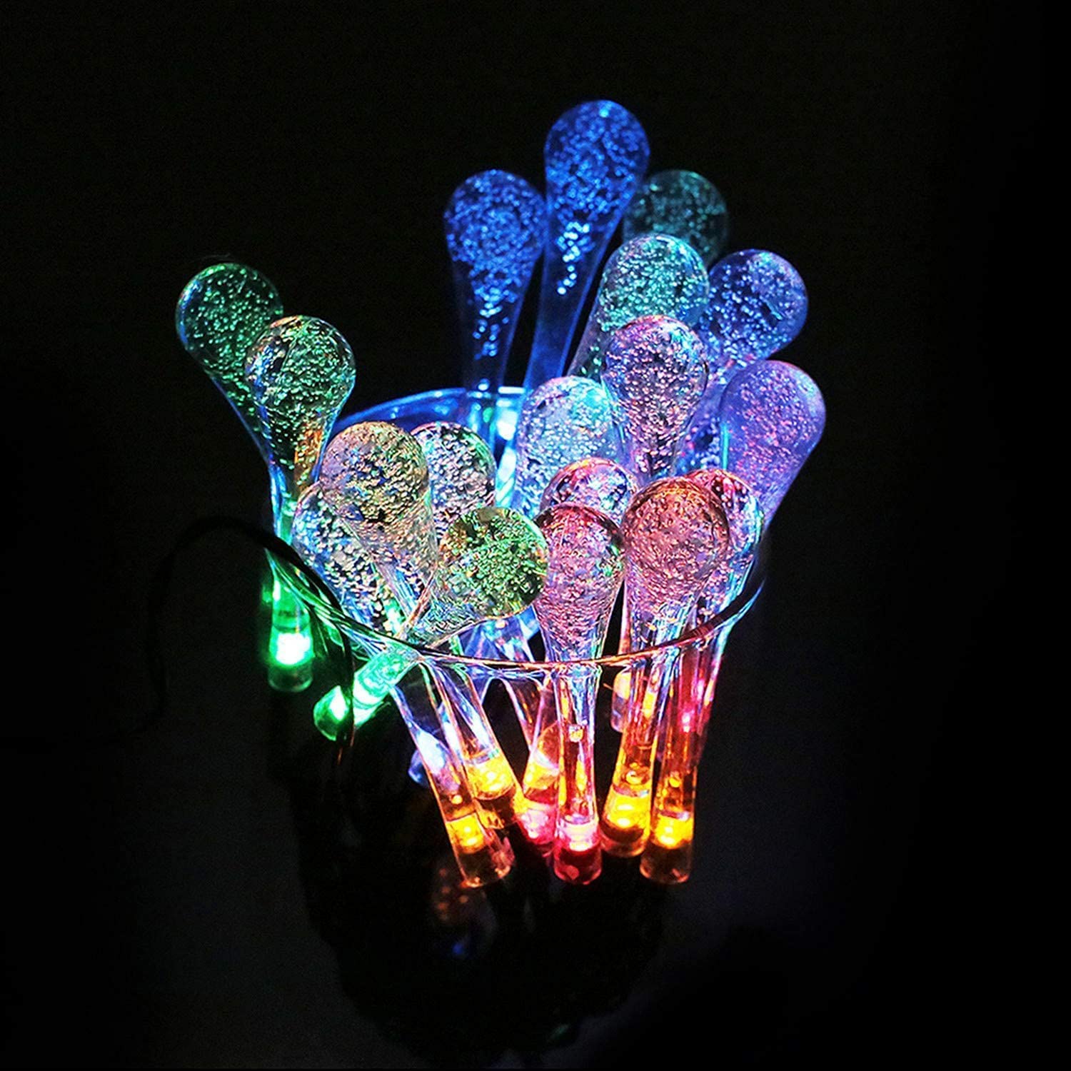 Specification: 2 Pack *30 LED water drop solar lights, Lead wire Length: 200 cm/6.6 ft; Space between LEDs: 15 cm/6 inch, Lighting Length: 435cm/ 14.2ft, Total Length: 635 cm/ 20.8 ft.