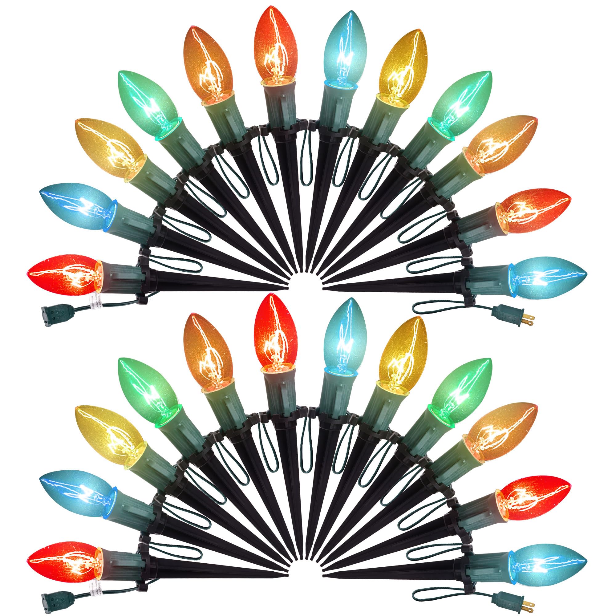 Christmas Decorations Outdoor Yard: 2 Sets of 24 LED C9 Christmas Lights Outdoor with 24 sturdy stakes. Include 1 Replaceable Bulb. 30.75FT long.