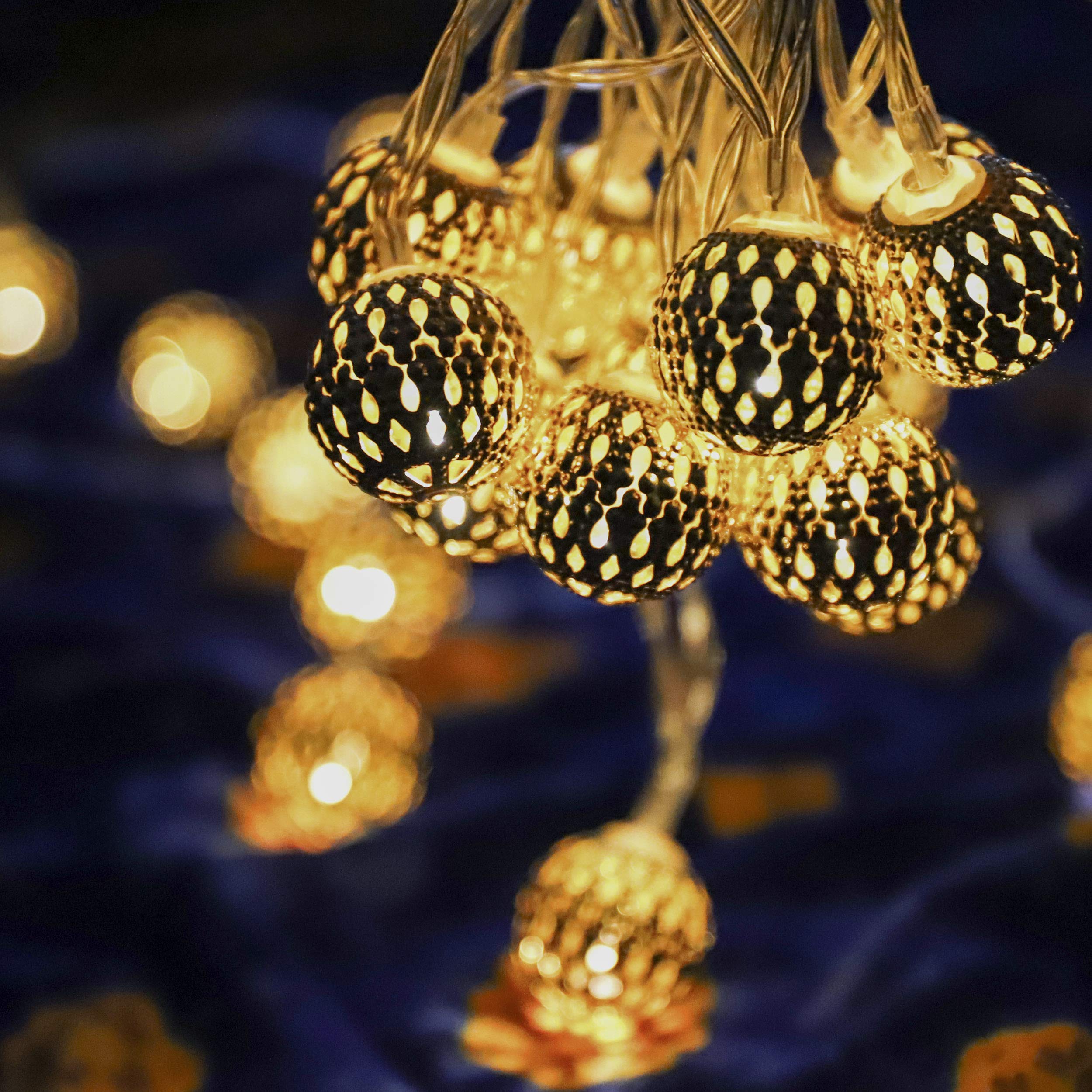 Elevate your outdoor ambiance with our LED Globe String Lights featuring Decorative Moroccan Orb design! Adorn your garden, patio, or outdoor space with these exquisite string lights adorned with 40 golden metal balls. These decorative orbs exude a mesmerizing Moroccan-inspired charm, creating a captivating and enchanting atmosphere for your outdoor gatherings or everyday enjoyment.