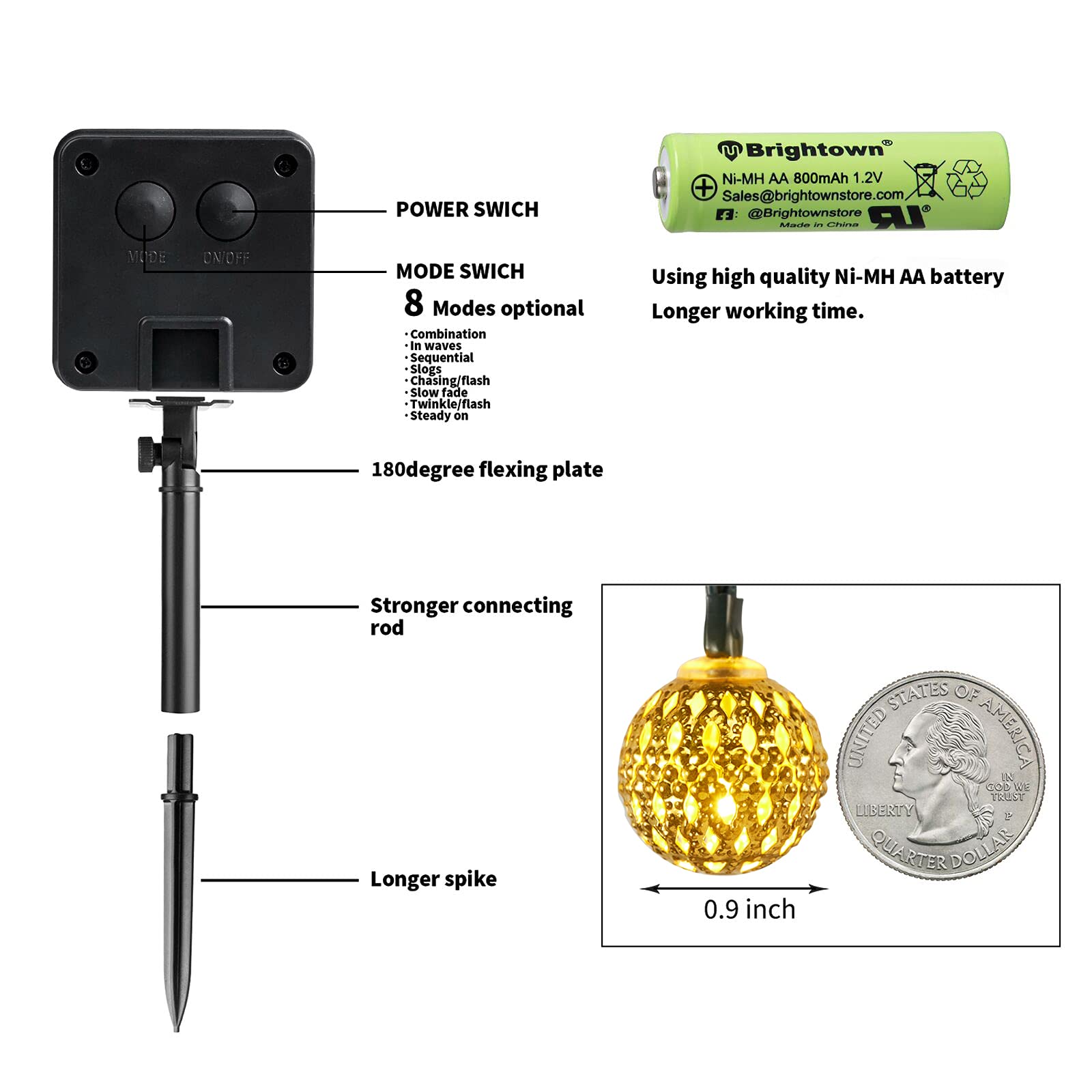 【Unique hollow globe design】: Amorous feelings of classical, ornament the room or event by the small shiny golden balls at the daytime and turn them on at night to add some charm and romance. 60 lovely golden metal balls of the outdoor solar lights string waterproof with delicate pattern, starry warm white lighting with an exquisite shadow, creating a cozy and festival mood for your home.