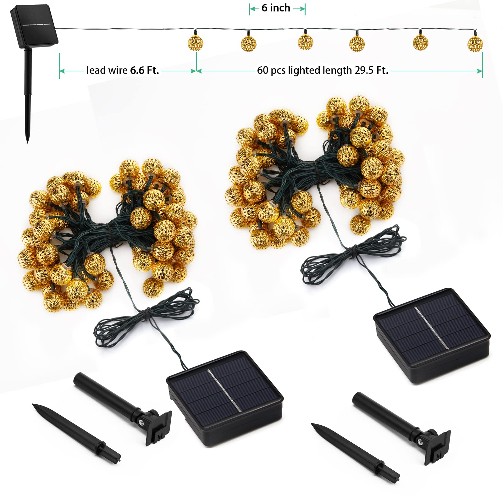 【Auto on/off & energy saving lights】: Solar Moroccan ball string lights charged by solar energy, without electric cost and no need to replace the battery. Solar panel with the light sensor controls function, which can make the twinkle lights auto light at night and auto off at daytime. (solar powered string lights can automatically work for 8 to 10 hours after fully charged)