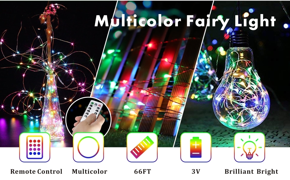- LONG FLEXIBLE SAFE WIRE LIGHTS: This durable led fairy light line is made of pure 66 feet soft copper wire. It can be bent to any shape easily over a thousand times, and it will not break. 66ft is long enough for any indoor and outdoor decor.It is low heat emission, and safe to touch.