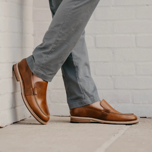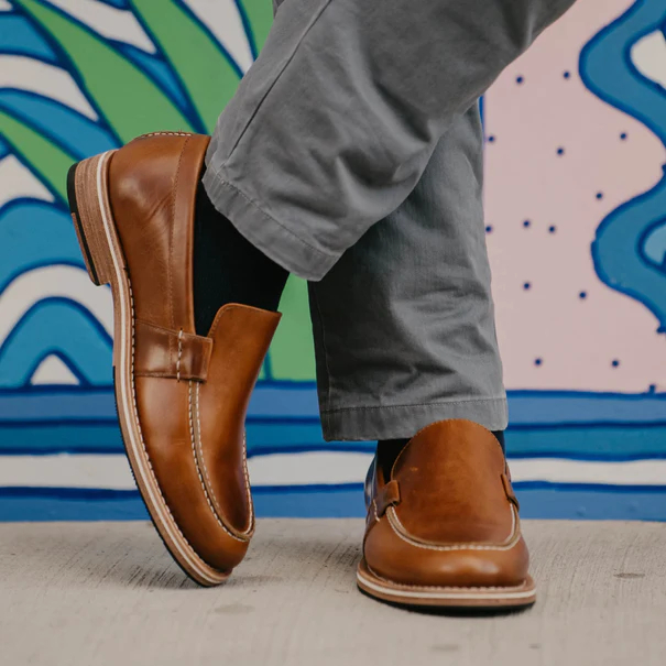 Reimagining the classic shoe, the Wilson is a modern and stylish slip-on with both comfort and personality. Featuring a unique and thoughtful design and made in Brown leather, the shoes are Blake Rapid Stitched and is constructed on our new sole for comfort and traction.