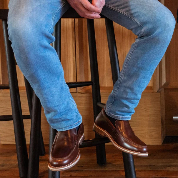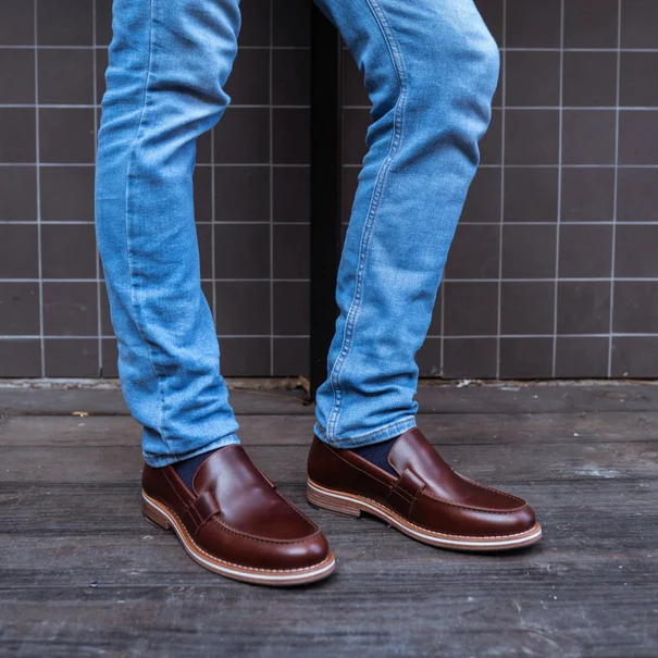 Reimagining the classic shoe, the Wilson is a modern and stylish slip-on with both comfort and personality. Featuring a unique and thoughtful design and made in Brown leather, the shoes are Blake Rapid Stitched and is constructed on our new sole for comfort and traction.